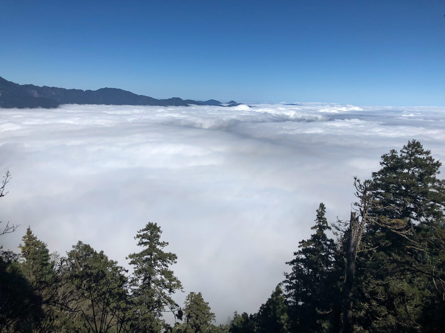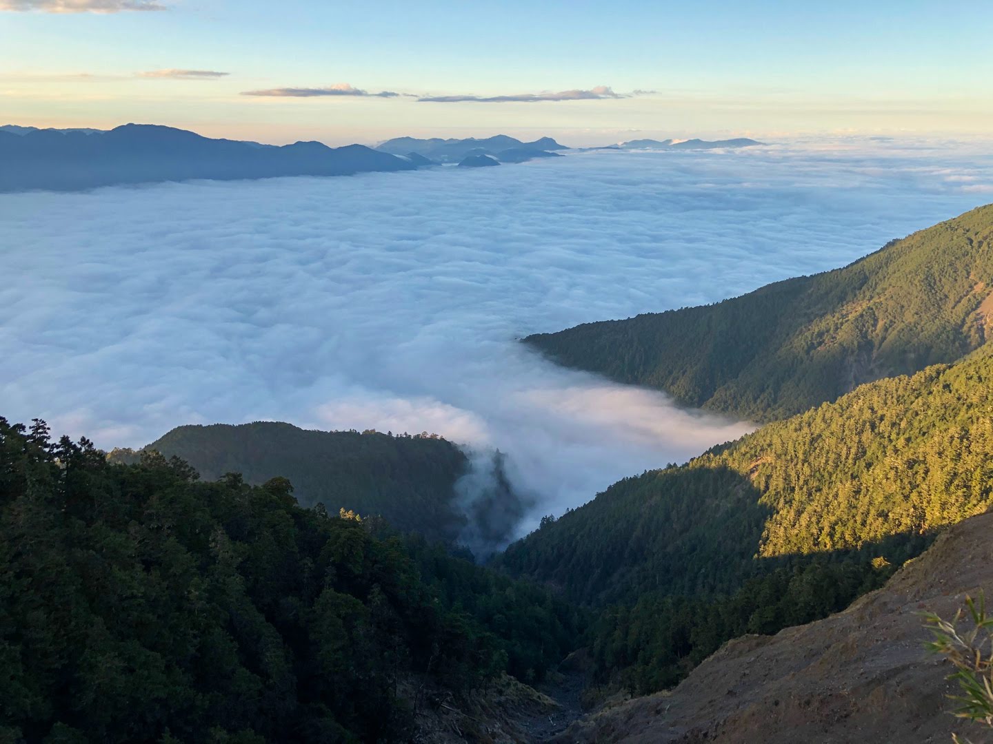 標高2700mを超えると次第に陽の光を感じはじめ、多加屯山(2795m)辺りで景色がひらけると、僕たちの目下には見たこともないような範囲の雲海が広がっていた。麓では曇天だったのに南湖大山付近の天気予報が良好だったのはこういうことだったのかと、興奮しながらカメラを向けた。