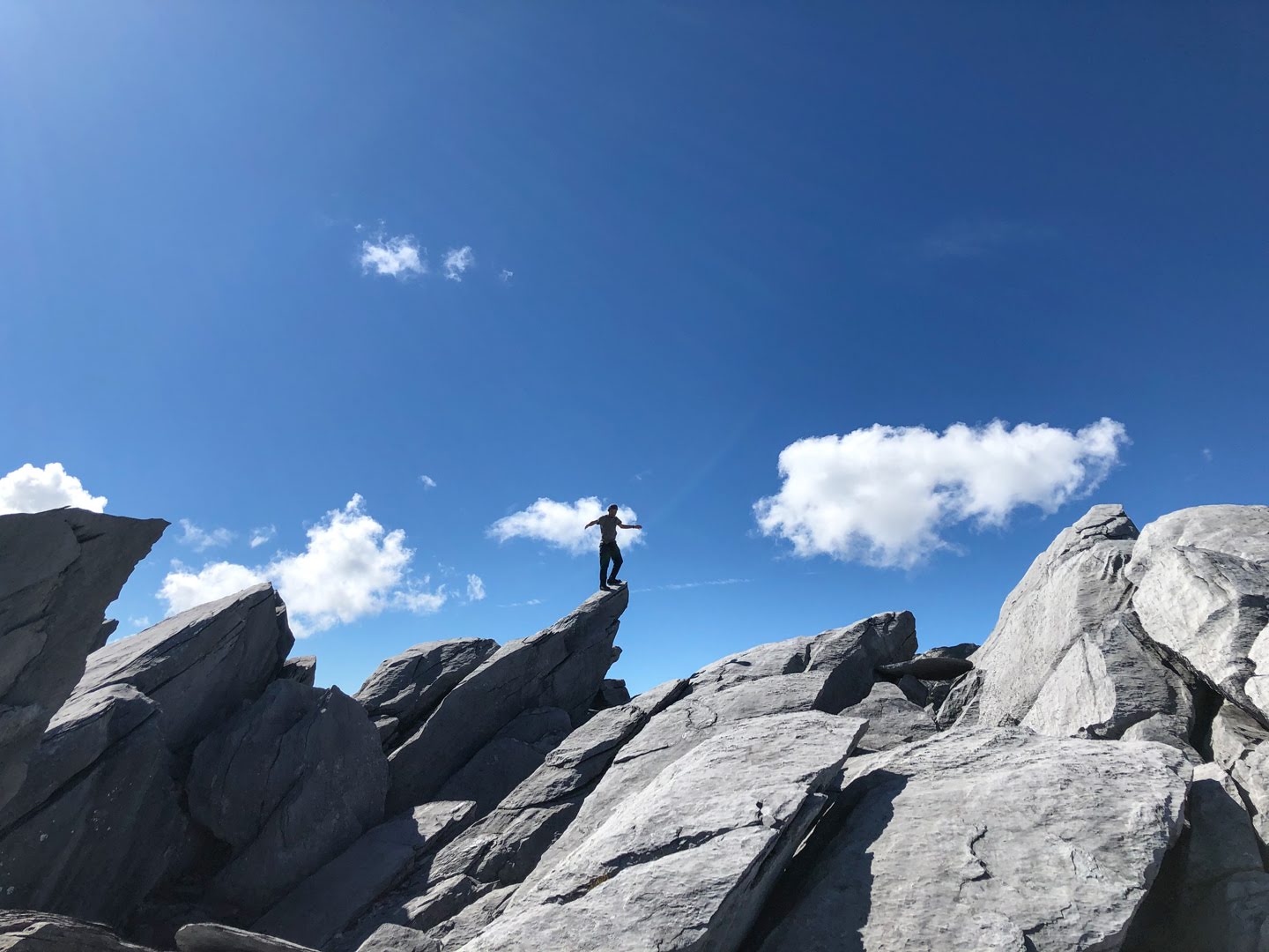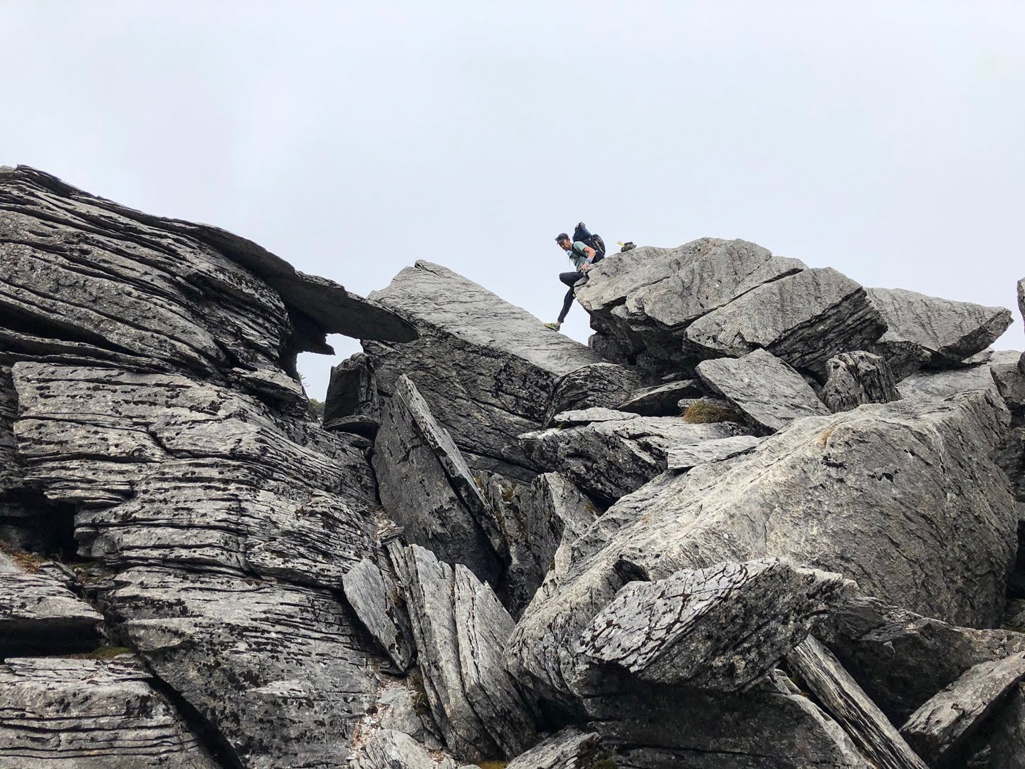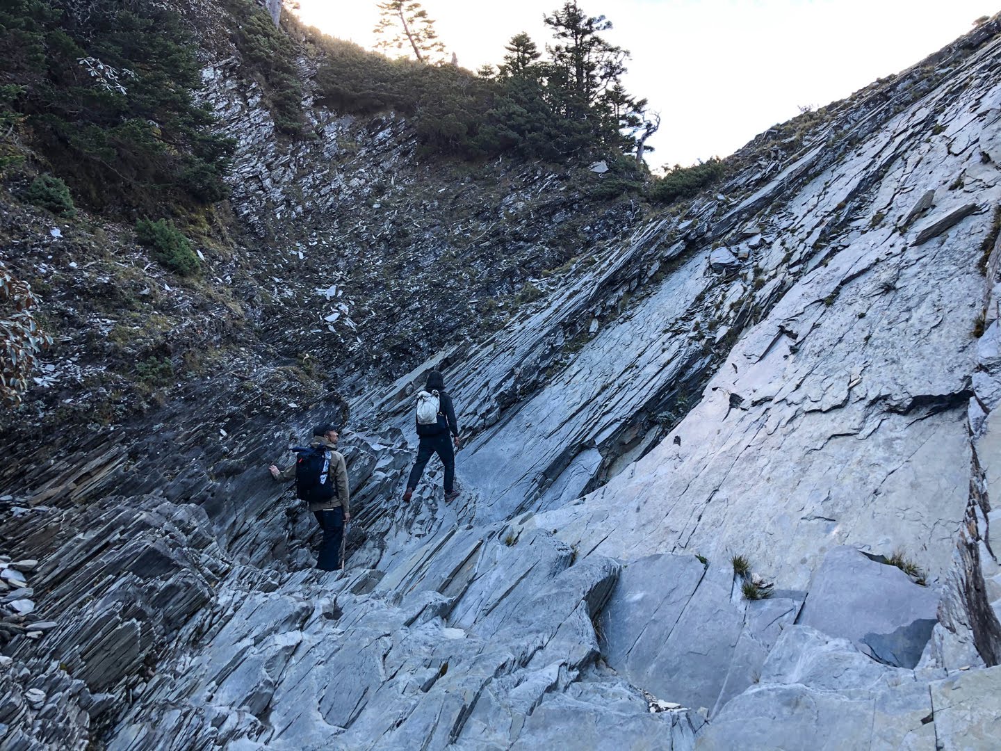 南湖大山南峰までは昨日と同じようなプレートが突起したような層状の岩があり、絶景の中、テクニカルな道が続いて面白かった。