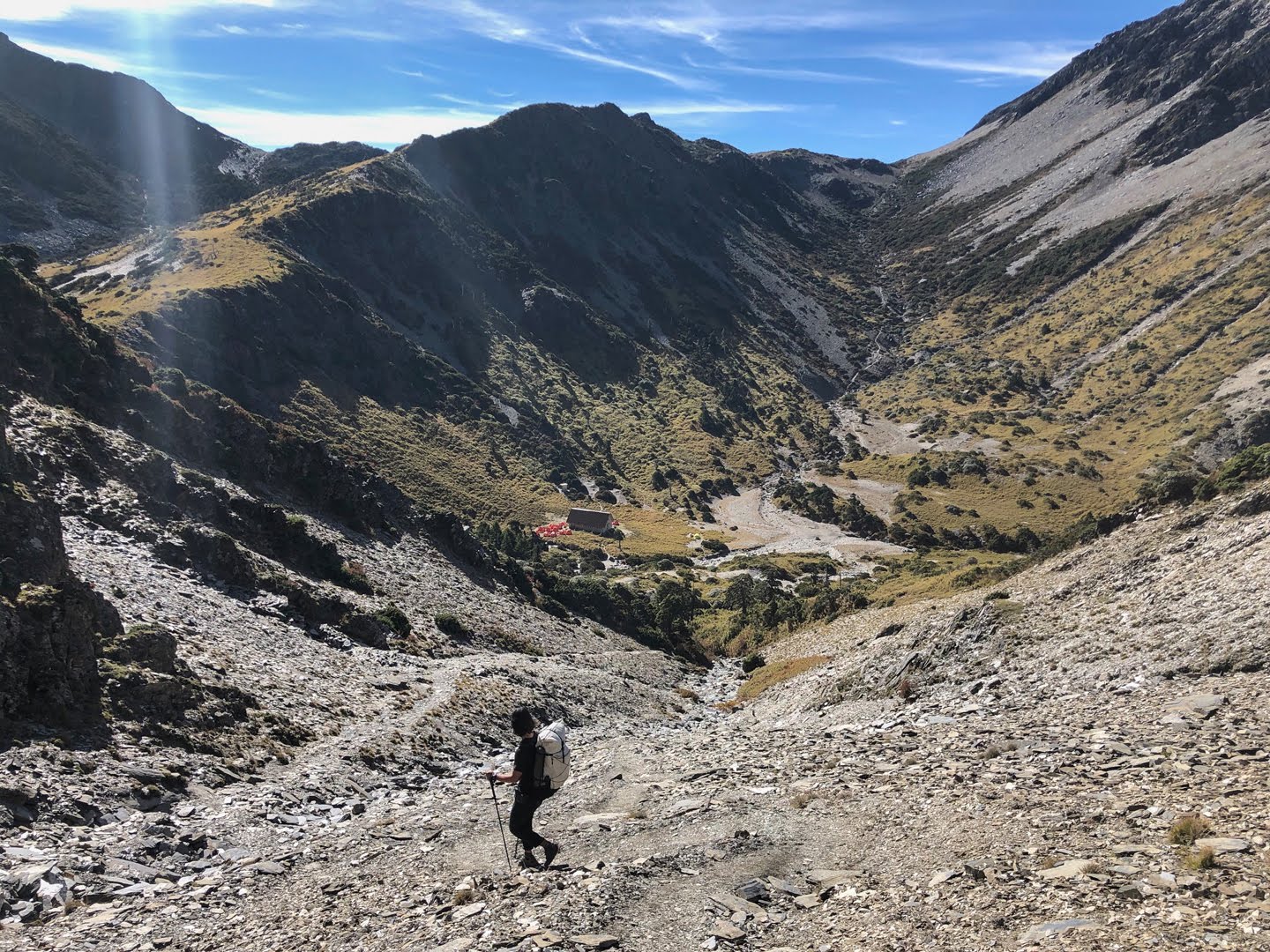 テン場を出たのは、8時を優に過ぎていた。南湖大山主峰(3742m)へ登り巴巴山(3449m)を経て中央尖渓山屋まで。この日は一気に谷の底まで標高を下げる。