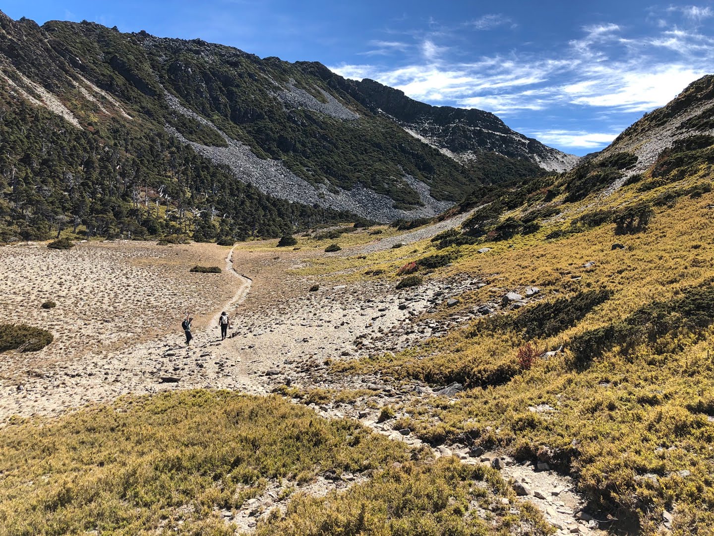 「北一段線」は中央山脈を代表する山岳、太魯閣エリアの南湖大山(3742m)と中央尖山(3704m)を結ぶ縦走路。周囲には審馬陣山、南湖北山(東峰・南峰)などの3000m級ピークが連なる。苔むした林道、広大なカール地形、中央山脈と雪山山脈の展望など変化に飛んだダイナミックな景観を持ち、自由にテント泊が可能な点も大きな魅力。中央尖山周辺はハイカーも少なく、静かな山行を楽しめる。