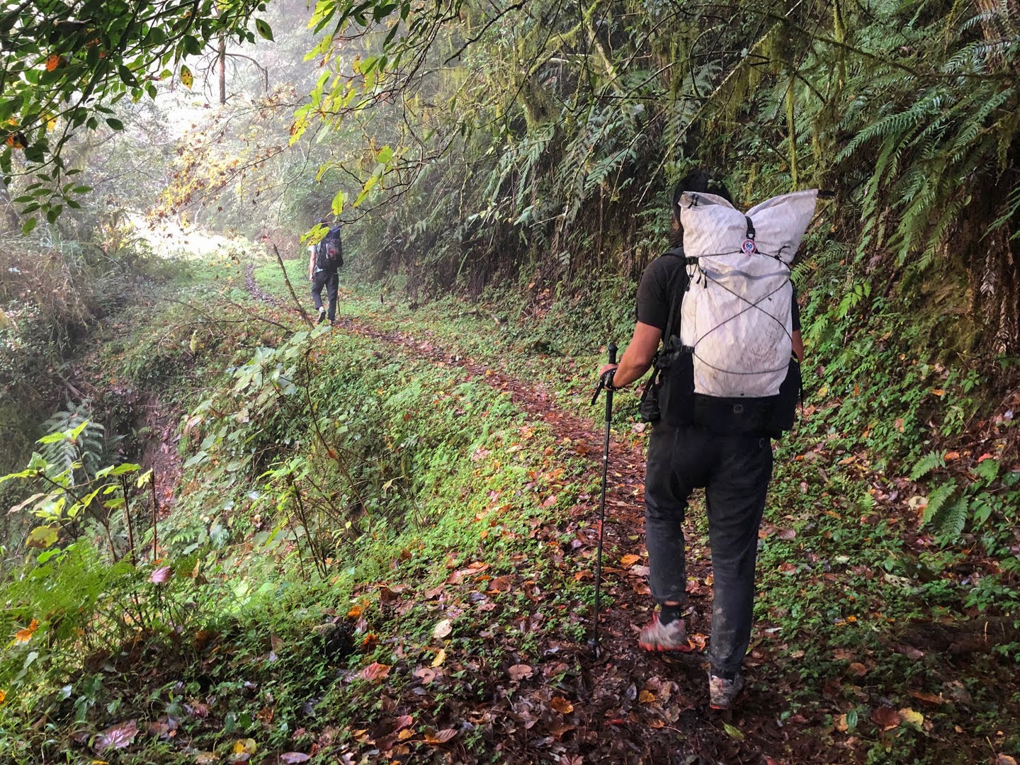 10時を回る頃には、初日に通った多加屯山(2795m)付近のトレイルに合流した。初日にみた雲海は同じように残っていて、やはりすごい景色だと思いつつも、これから厚い雲海の中に入っていくのが文字通り目に見えているので、これからしばらく感じることができない日光を見納めておいた。