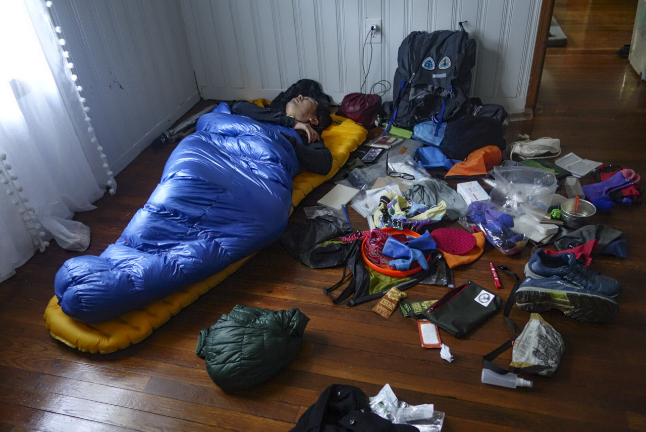 「先々週からアパラチアン・トレイルの準備を始めたんだよ。道具も資金も。だから必死で寝る間がなかったんだ。」