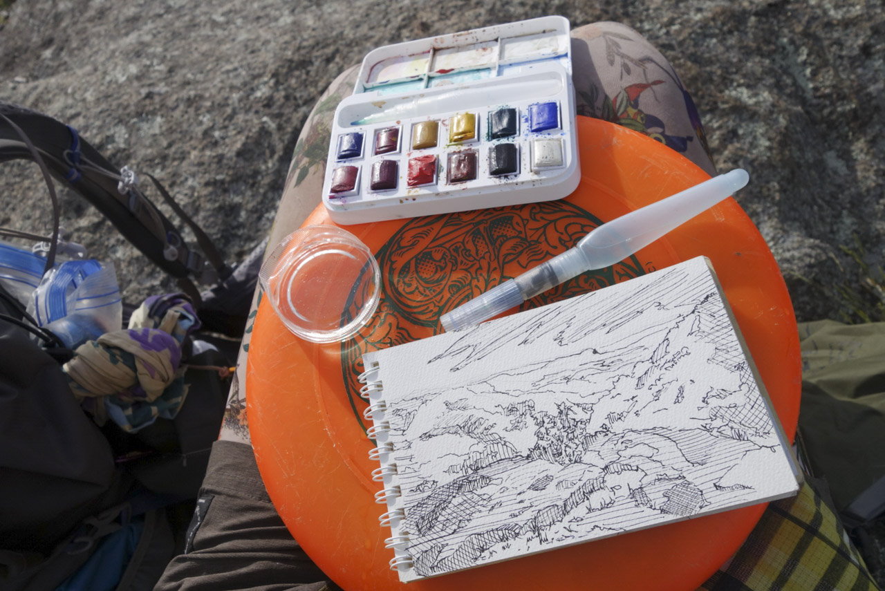 僕はジップロックを持ち上げて彼に見せる。その中には詰め込まれた数種類のスケッチブック。30本ほどのペンと水彩画材。さらにはカッターと定規もある。