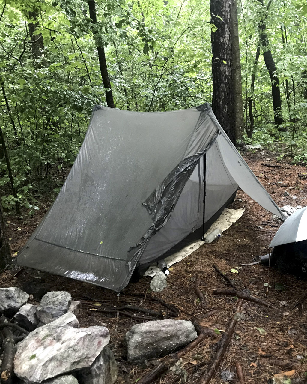 「今回はゴッサマーギアのジ・ワンを使うことにした。これは2本のトレッキングポールを使用するタイプだね。」