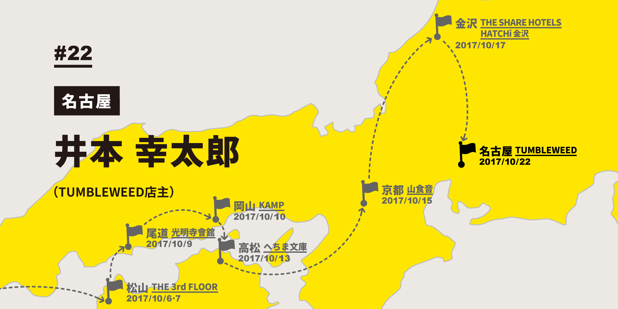 いよいよラストまであと3回となった#22のゲストは、名古屋でオルタナティブな植物雑貨店『TUMBLEWEED』を営みつつ、グラフィックデザイナーとしても活動する井本幸太郎さんです。