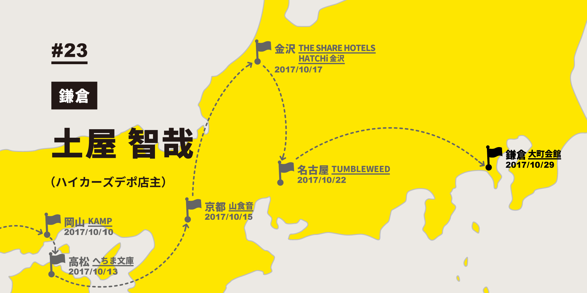 北は北海道から南は鹿児島まで、毎回その土地に所縁のあるゲストスピーカーをお迎えしてお話しを伺い、地元のハイカーやお客様と交流した『HIKE / LIFE / COMMUNITY』とは、いったい何だったのか? この『HIKE / LIFE / COMMUNITY TOUR 2017 REMINISCENCE(=回想録)』で、各会場のゲストスピーカーの方々に豊嶋秀樹が収録していたインタビューを通じて振り返っていきます。