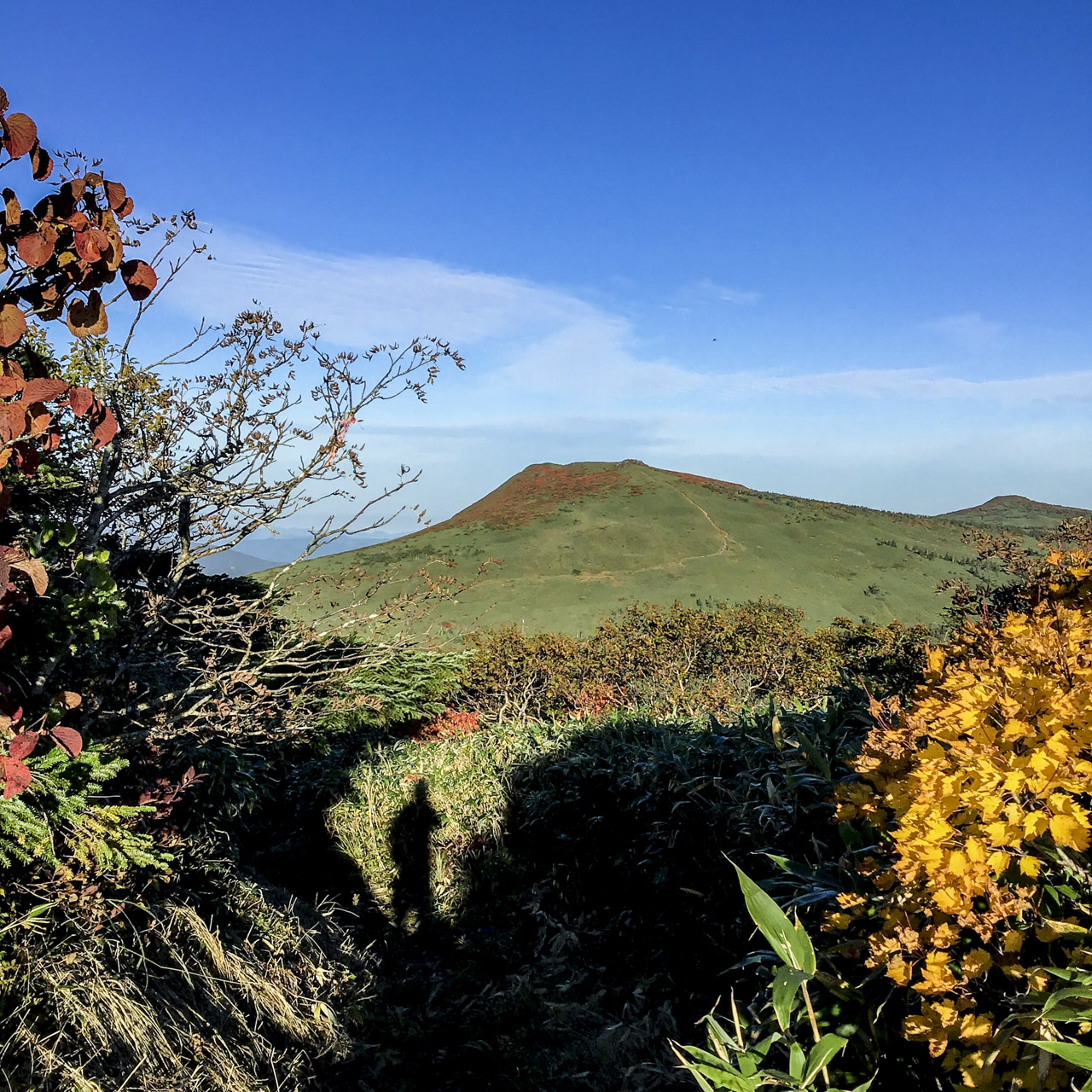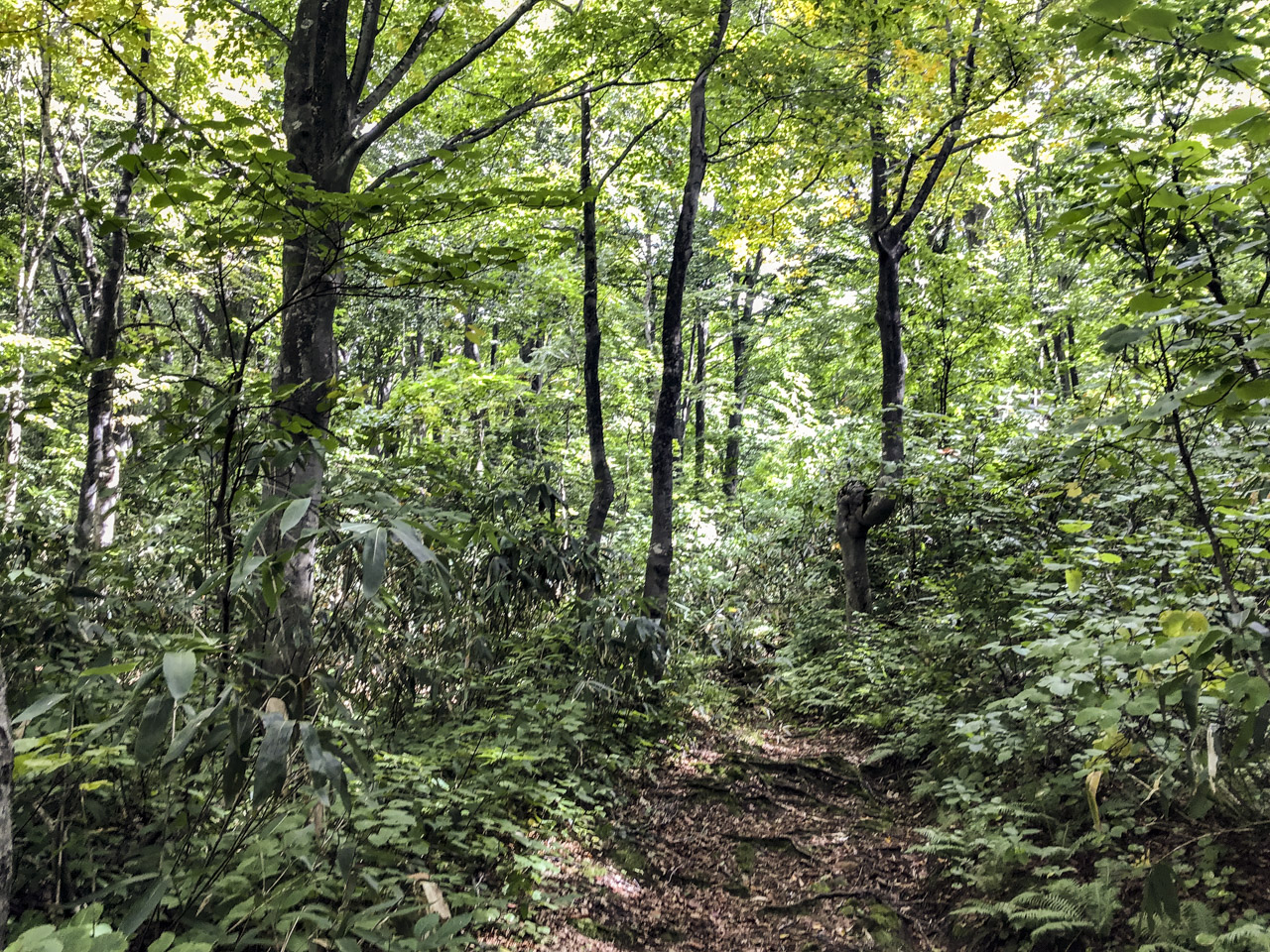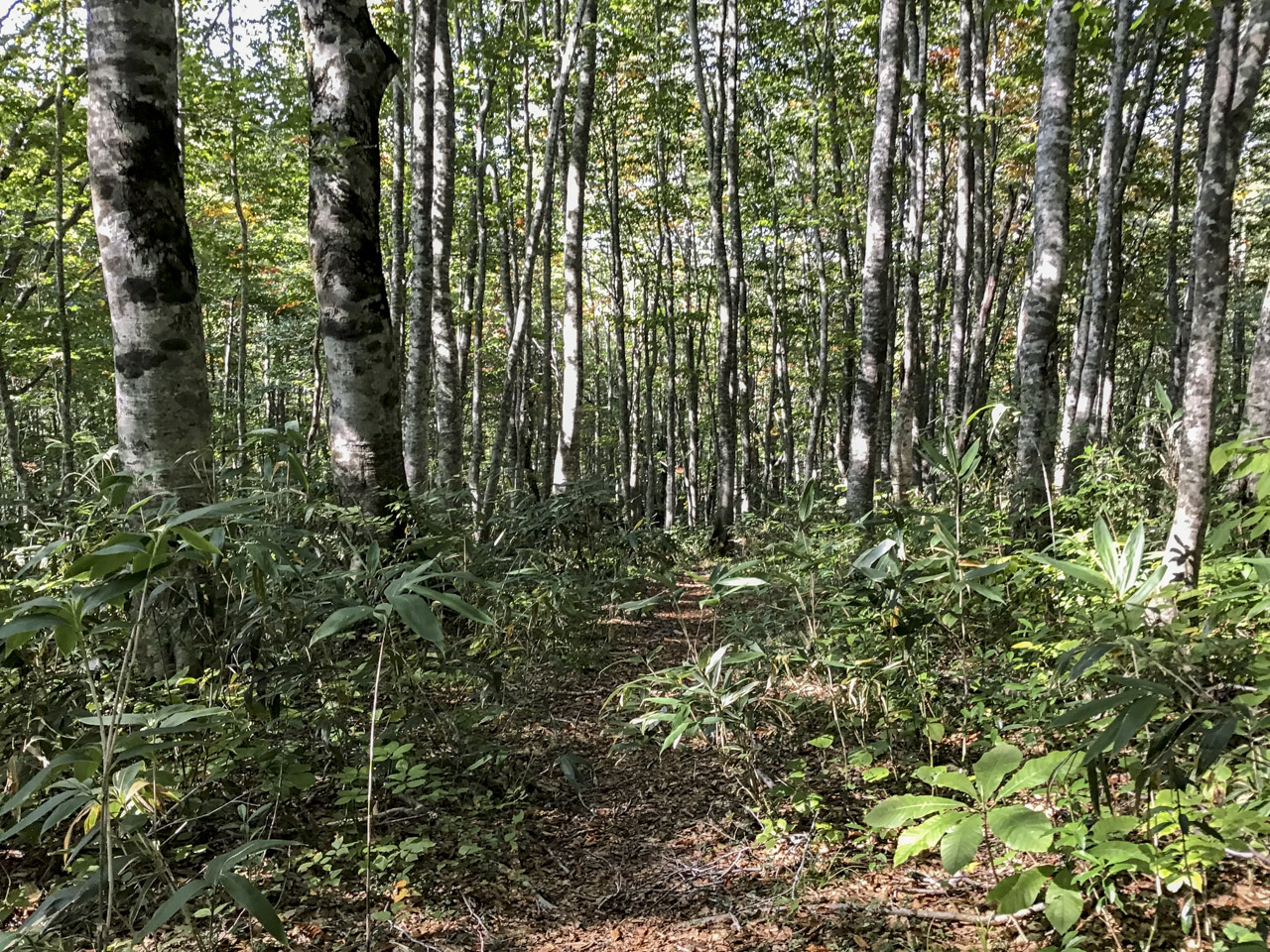 小白森山と大白森山を経て、 乳頭山へ近づくにつれだんだんとヤブがなくなり、歩きやすいトレイルへと変化していった。長いヤブ漕ぎはかなり集中するため歩き瞑想に近い。静かにハイになっていた。 ただ普通に歩けるだけでめちゃくちゃ嬉しい。気持ちいい! 最高だ‼︎