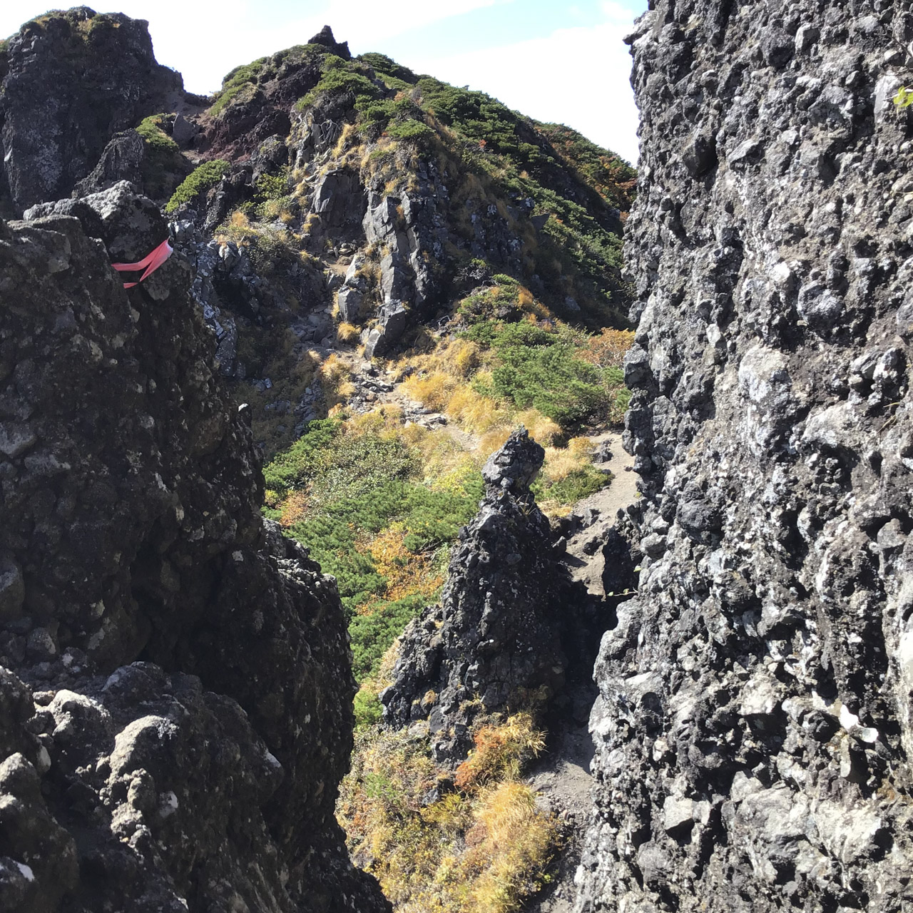 彼らも調子の良い様子で軽快に歩いていく。どんどんハイカーが集まってきているのだろう。いよいよ明日なのだ! と言っても、すっかりこの山域にヤられていたその時の僕には、そのことがあまりリアルに感じられていなかった。鬼ヶ城にはゴツゴツして危なっかしい箇所がいくつかある。