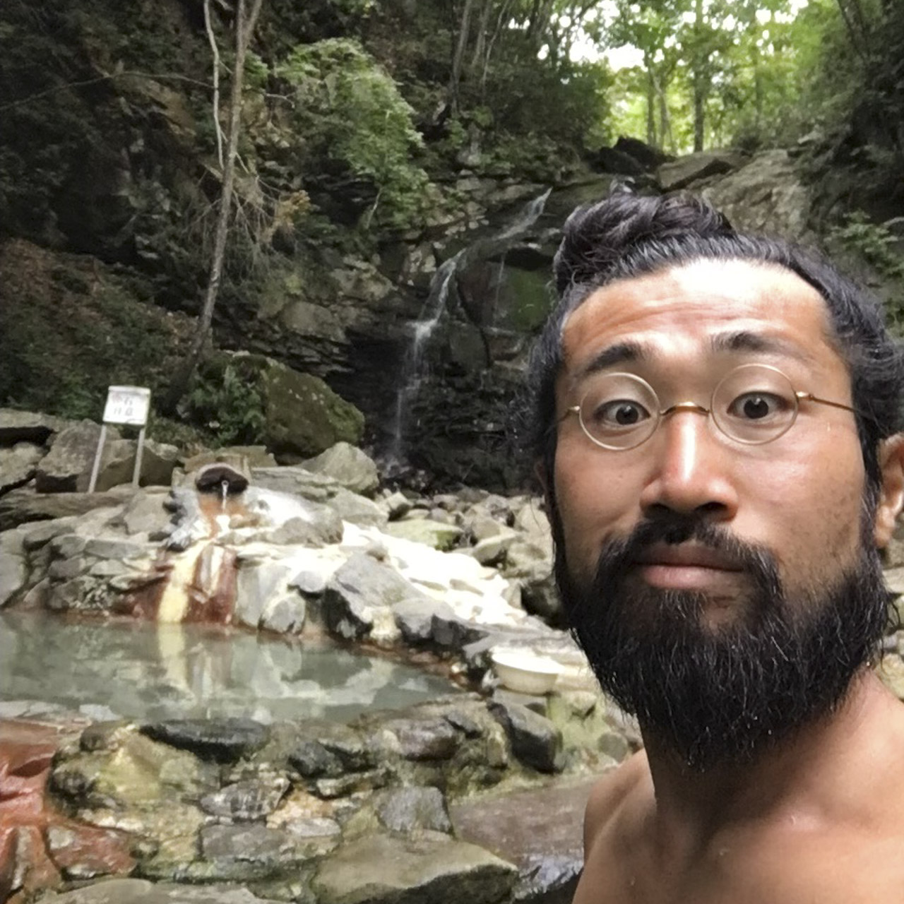 何を隠そう、混浴露天風呂である『仙女の湯』。「どうせおっさんしかいないだろう」と足を踏み入れると、男性数人の他、妙齢の女性グループもこともなげに入浴している様に東北の底知れぬパワーを感じたのですが、さらにインパクトがあったのが、僕の顔を見るなり「三田君ですか?」と話かけてきたどこからどう見ても風来坊……というか裸の野人にしか見えない彼、やまち君との出会いでした(もちろん僕も裸でしたが)。