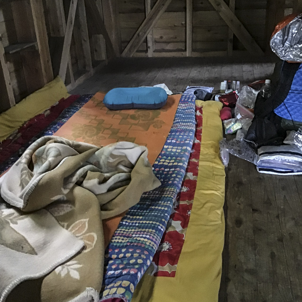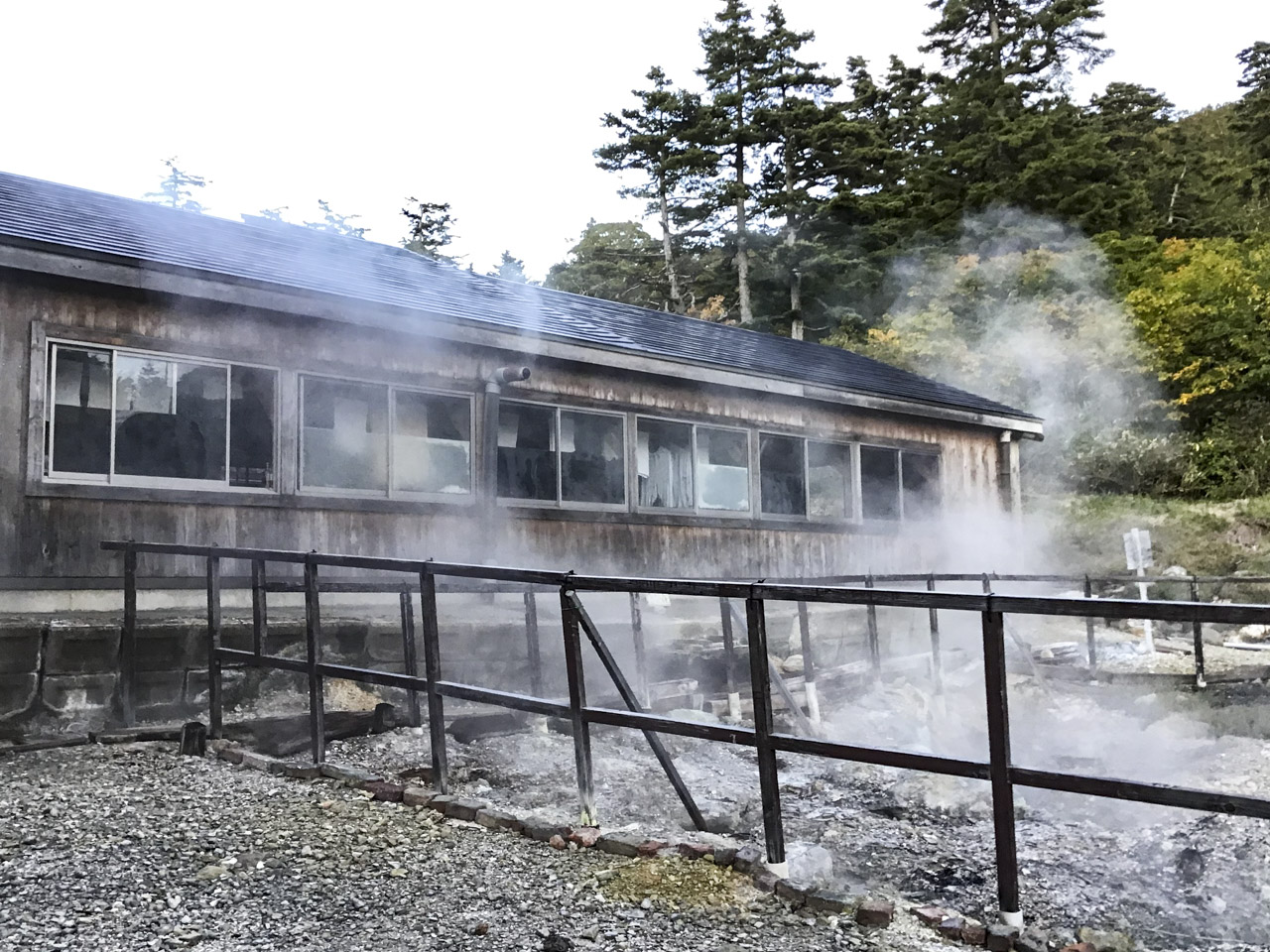 早朝、汗だくで目を覚ました。オンドル小屋内はなかなかな温度で、ただでさえ薄い山と道のミニマリストパッドが熱で紙のようにさらにペランペランになってしまっていた! 旅にはアクシデントはつきものだと、早朝風呂に入り気を取り直してパッキングし、冷たい空気の中を歩きはじめた。次は1週間ほどここで湯治暮らしをしてみたい。 見たところ全国から愛好者が来ていたので話す相手には事欠かなそうだ。