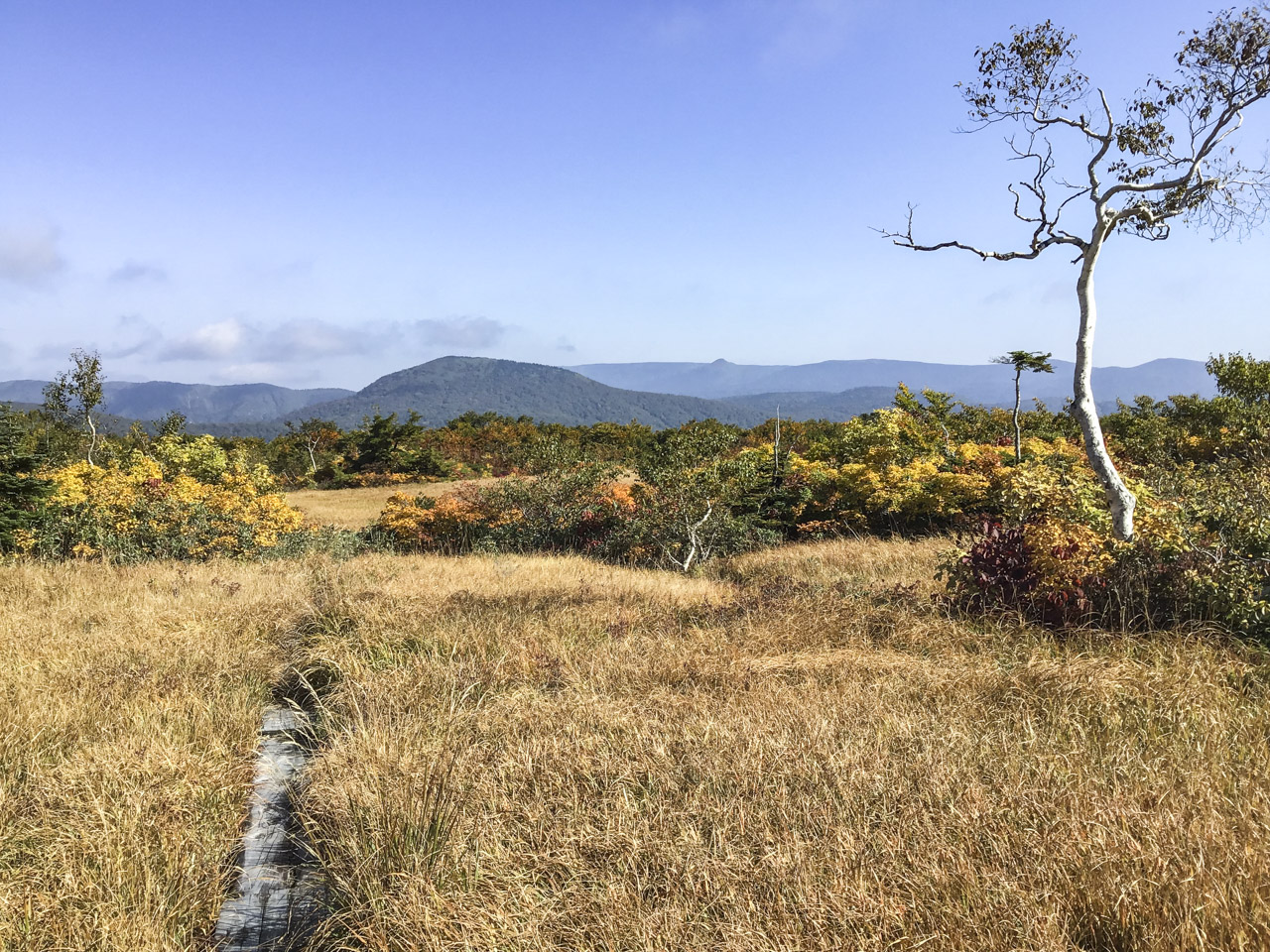 五感をフルに研ぎ澄まし、引き続きヤブの中を歩いていく。緩やかな登りが続いたかと思うと道は平坦になり、木道になったと思ったらバーーンと一気に視界がひらけた!
