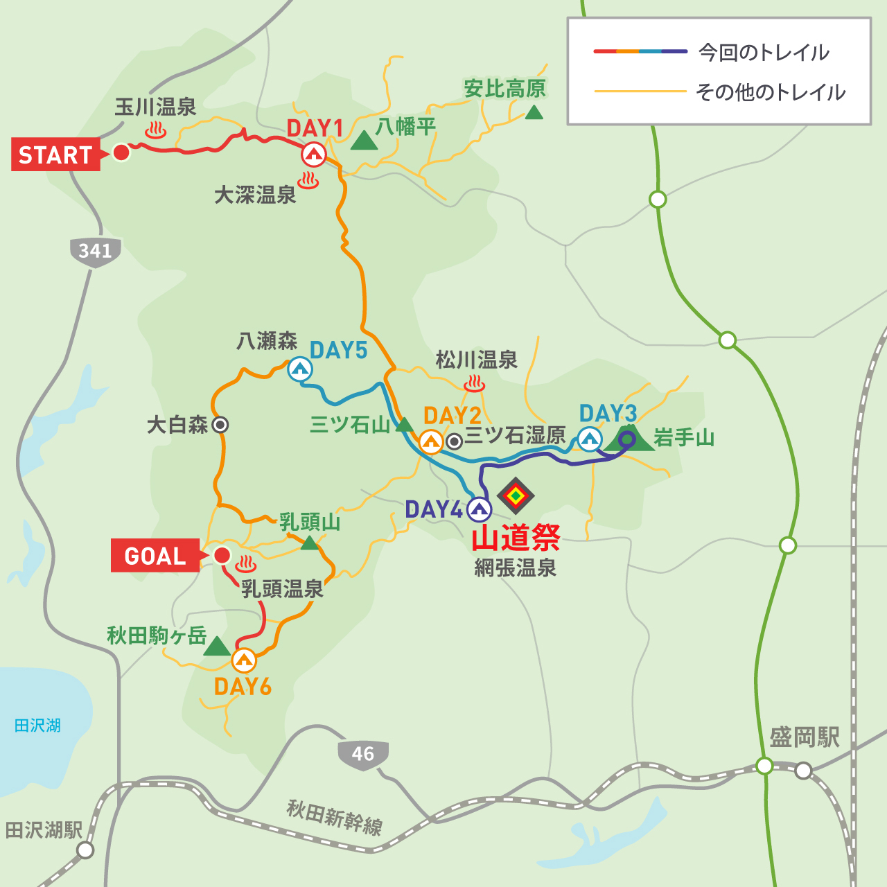 山と道のみなさんや関係者、集まったハイカーたち、集まれなかったハイカーたちももちろん、 岩手山を筆頭に周辺の山域とトレイルの整備に携わった方たち、 山の神様、そしてそこに生きるすべてのいのちと働きに最大の感謝を捧げる。 嬉しい楽しいありがとうしあわせ。