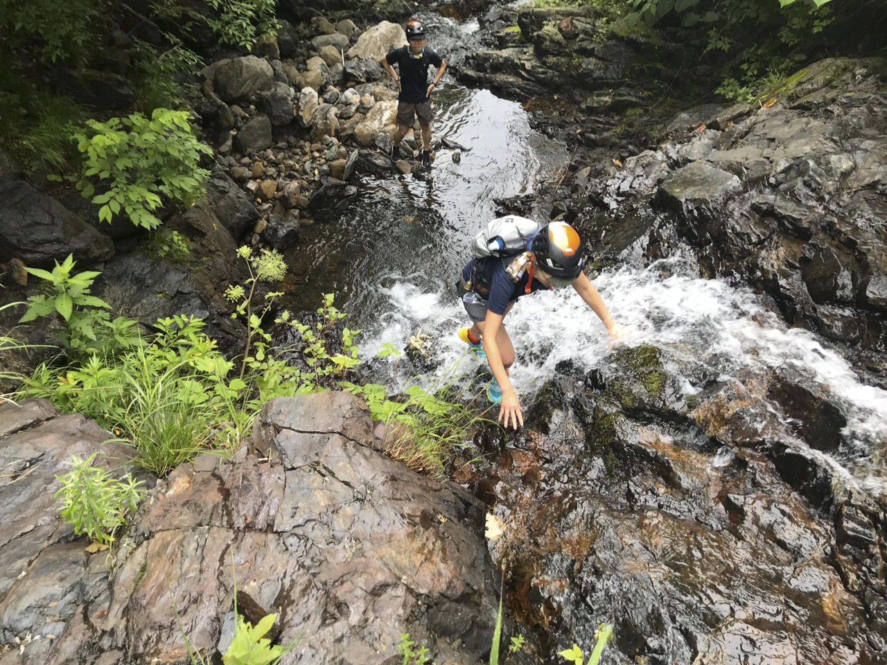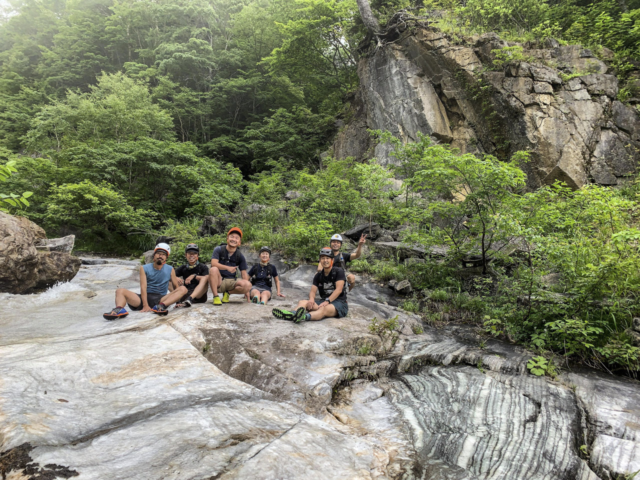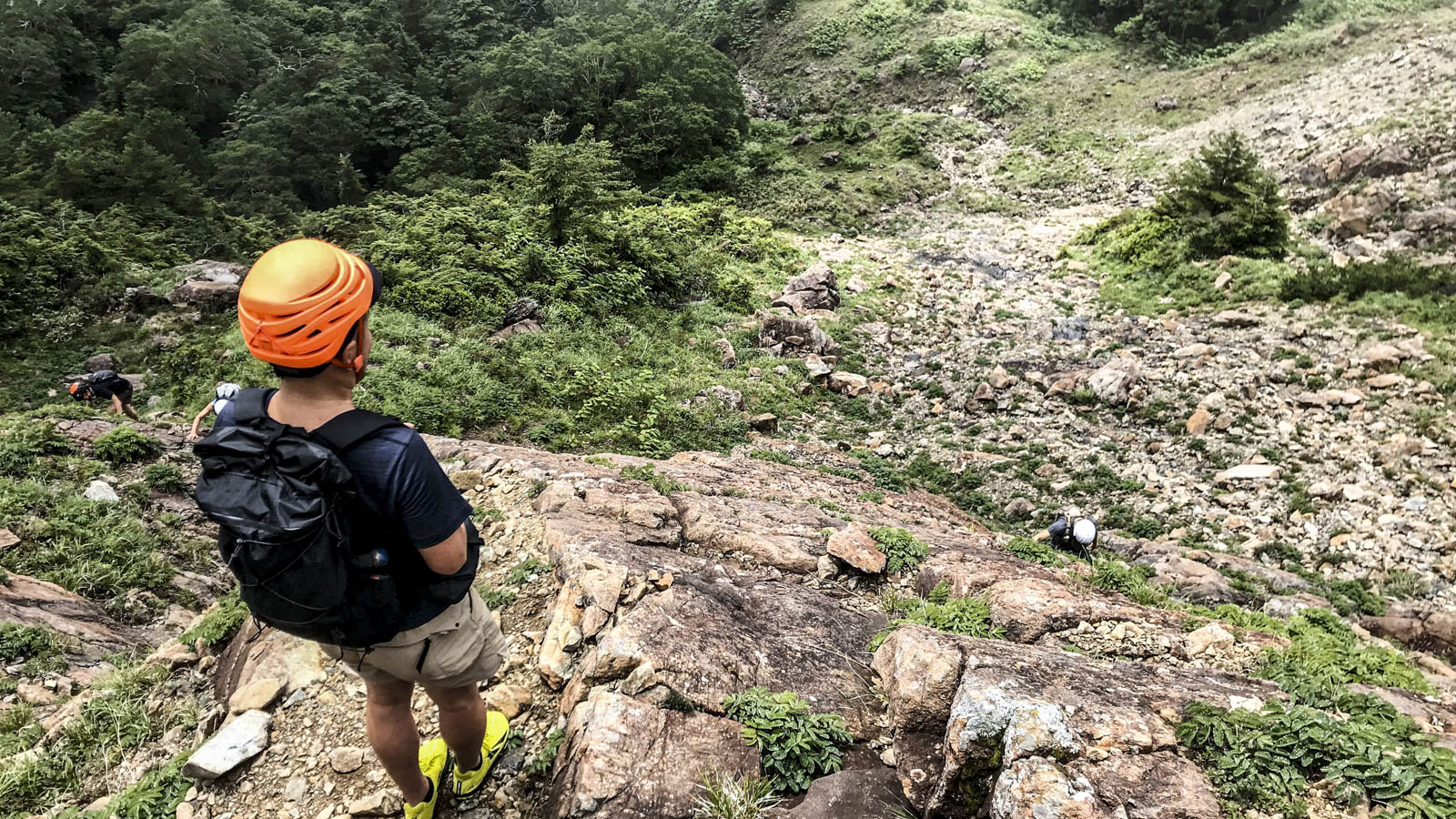 上野 結構、クタクタになりますね。ハイキングの間にクライミングが挟まるんで、全身的な疲労も大きいんですよ。沢も下の方からなので結構な距離ありますし、岩登りが始まるところから稜線に出るまでも標高差1000m近くあります。何より、ずっと繰り返しスリルと戦ってるので、メンタルも疲れますしね(笑)。でも、終わったときの満足度は大きいです。