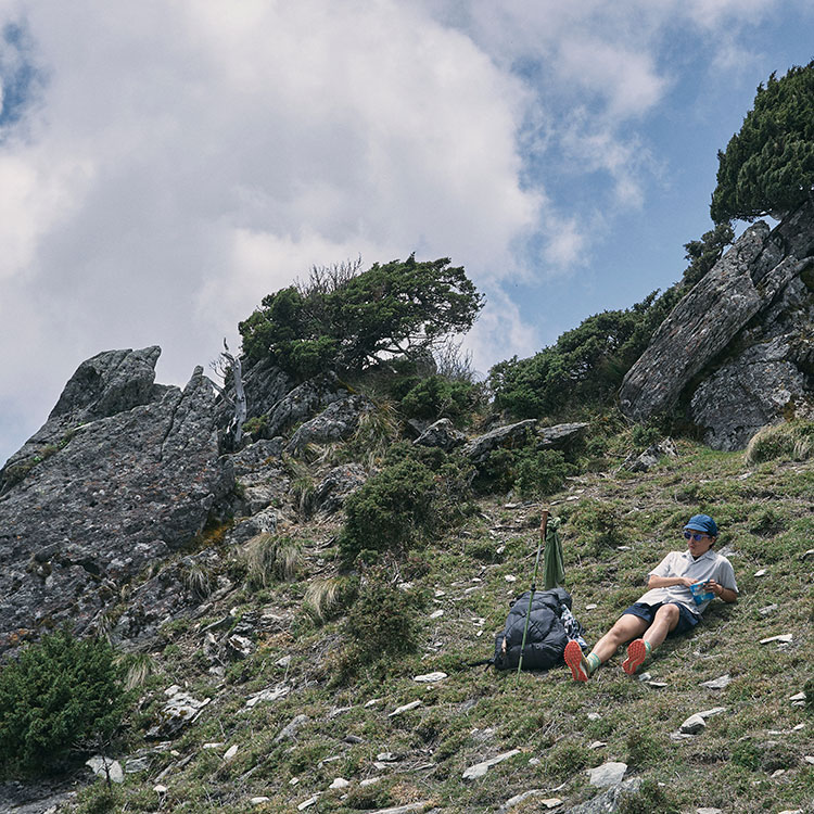 Morgan:疲れたら地面に寝転がるのが一番!以前一度だけ嘉明湖に登ったことがあったけれど、今回の旅はより楽しかった。モデルという役割があったけど、面白さが減ることはなかったよ。