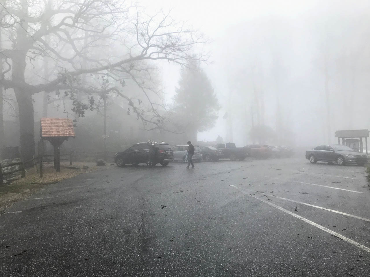 ニールズ・ギャップの駐車場は霧に包まれていた。