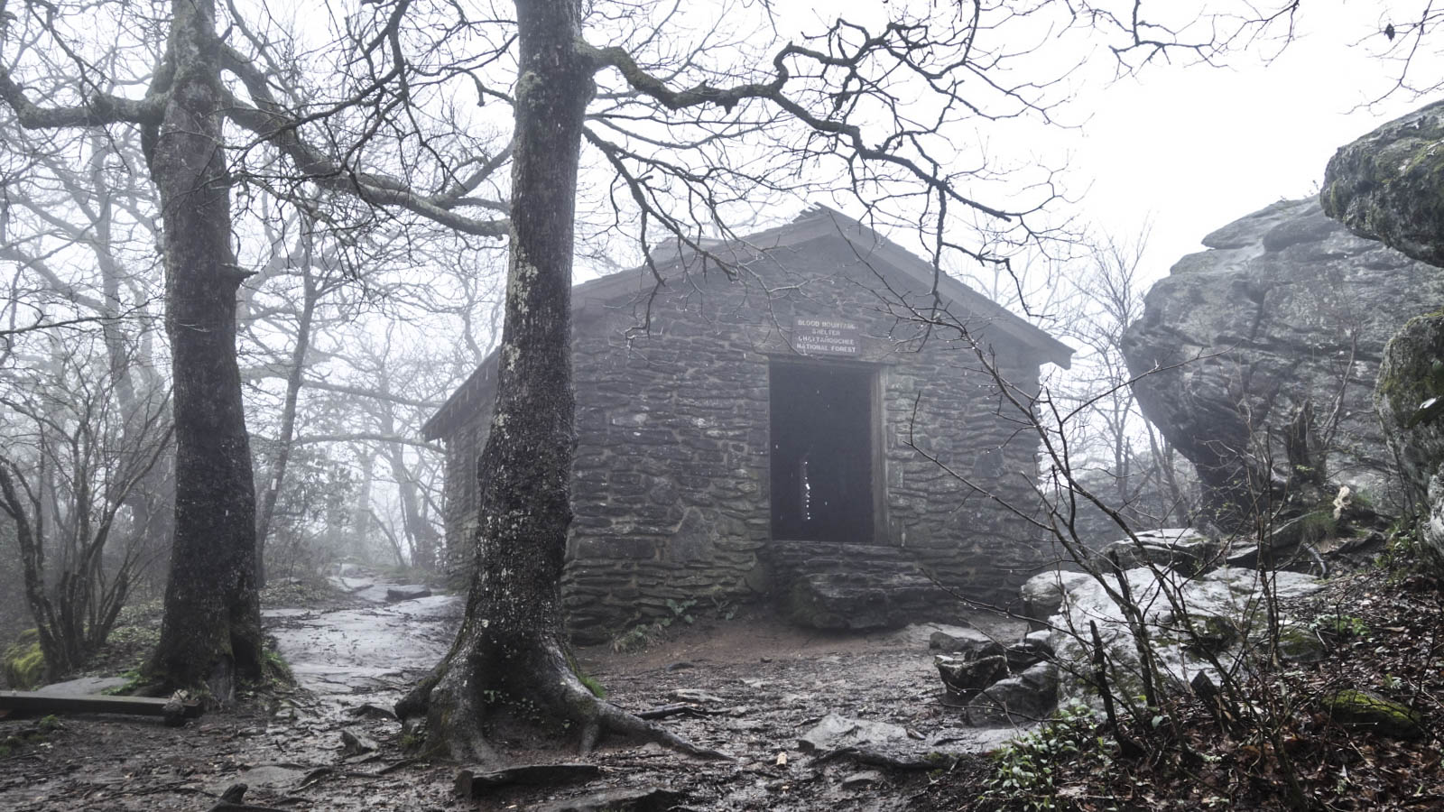 ブラッド・マウンテンはアパラチアン・トレイルのジョージア州セクションにおいて最も標高が高いとされているが、その高度はなんと4442フィート(1353m)しかない。コンクリートの薄暗いシェルターに入る。建物の窓枠にはガラスがはめられておらず、雨が吹き込んでいる為、内部は浸水していて快適な場所とは言い難いが、アパラチアン・トレイルのシェルターは木造の小屋が一般的なので、これでもかなりしっかりした部類だ。