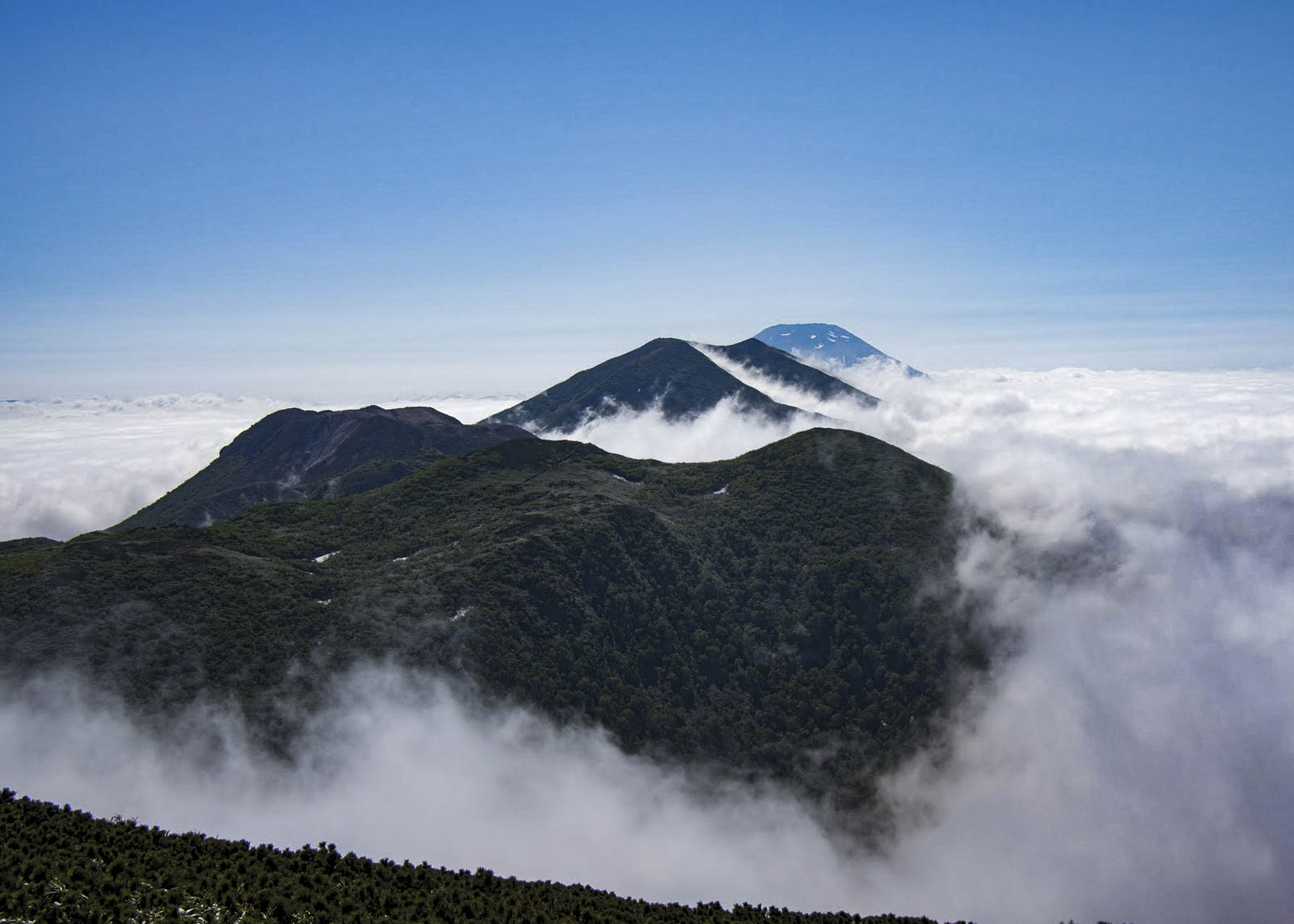 ニセコ連峰12座の山はどれもが異なる表情を持つ。雷電山や岩内岳、目国内岳、前目国内岳と前半は緩やかな斜面が多く広大な湿原が続き、冬は辺り一面真っ白に覆われ、山の上の雪原は宇宙のどこかの星に降り立ったような感覚になる。
