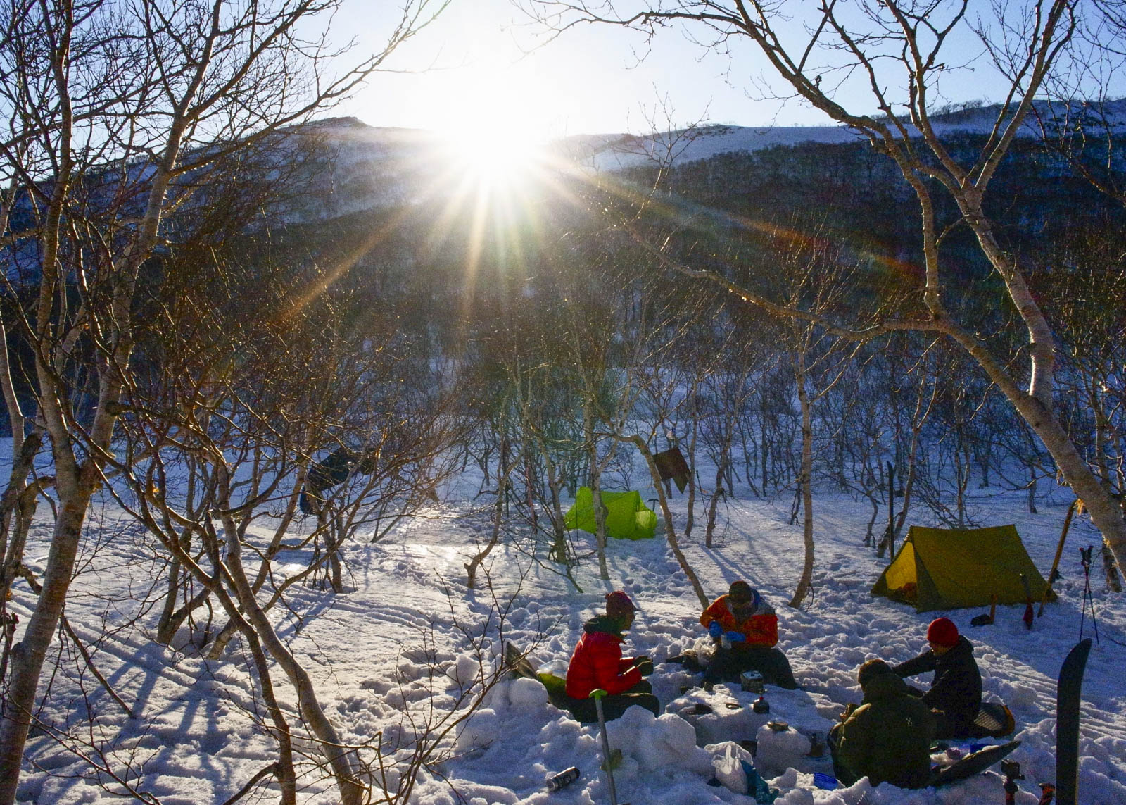 そして、たくさん登り、たくさん滑った後にたどり着く五色温泉周辺で2回目のキャンプ。名湯が疲れと緊張でいっぱいだった身体を癒し、リセットしてくれる。