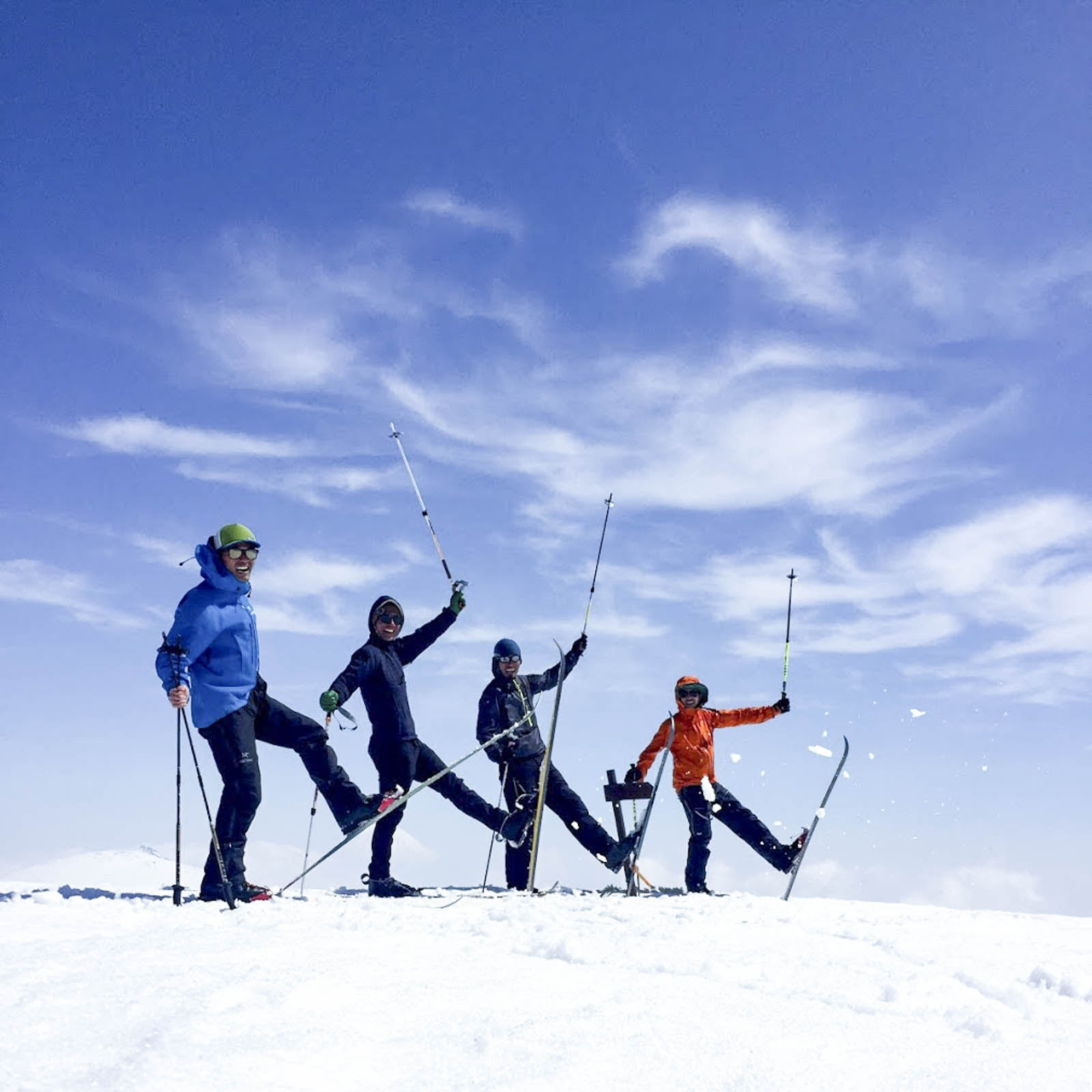 天気は終始快晴で雪面は一面のフィルムクラスト(表面が薄い氷の膜で覆われた状態)。パウダースノーよりも珍しく滑って気持ちのいい奇跡的なコンディションで、3日間の行程を朝から日が暮れるまで滑り倒した。