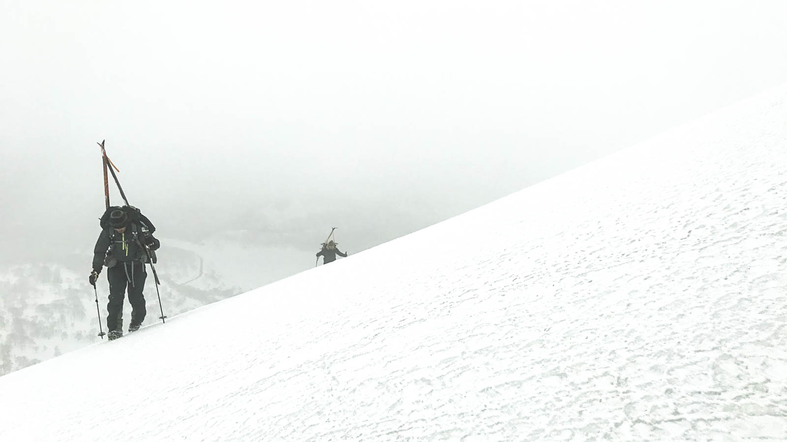 2018年の4月に年間通して僕らは初めてこのルートを完遂した。しかし、完遂といってもギリギリの状態だった。気温が低く所々ではホワイトアウトになるところもあり、何よりも恐怖だったのは斜面が全て氷で覆われていたことだった。スキー板からアイゼンに履き替えるタイミングが遅れると、高いところに上がって降りられなくなった猫のように身動きが取れなくなってしまうのだ。