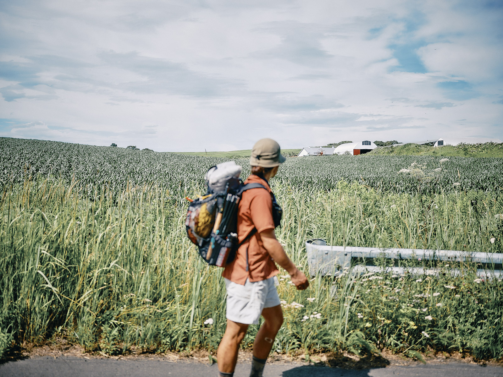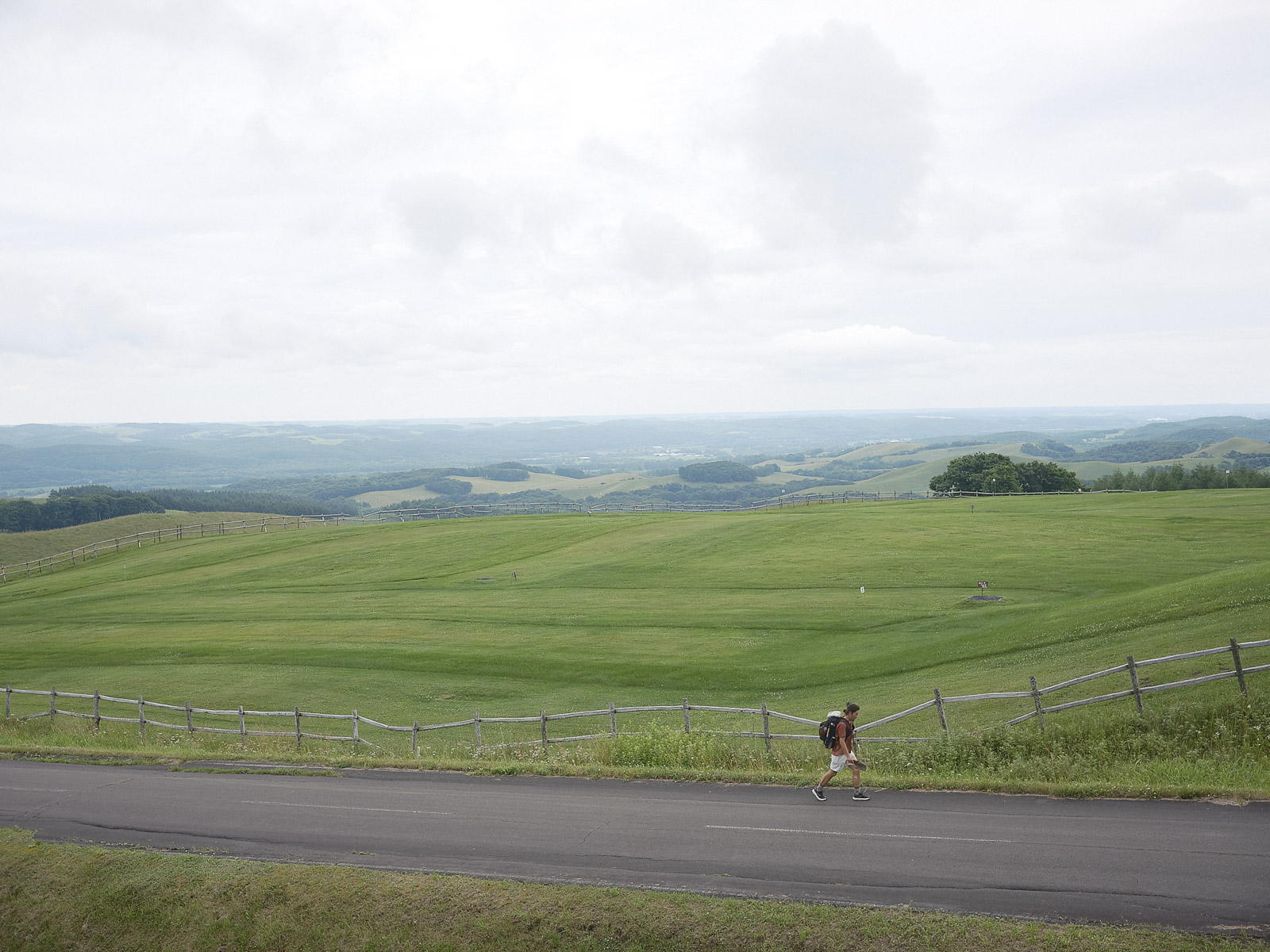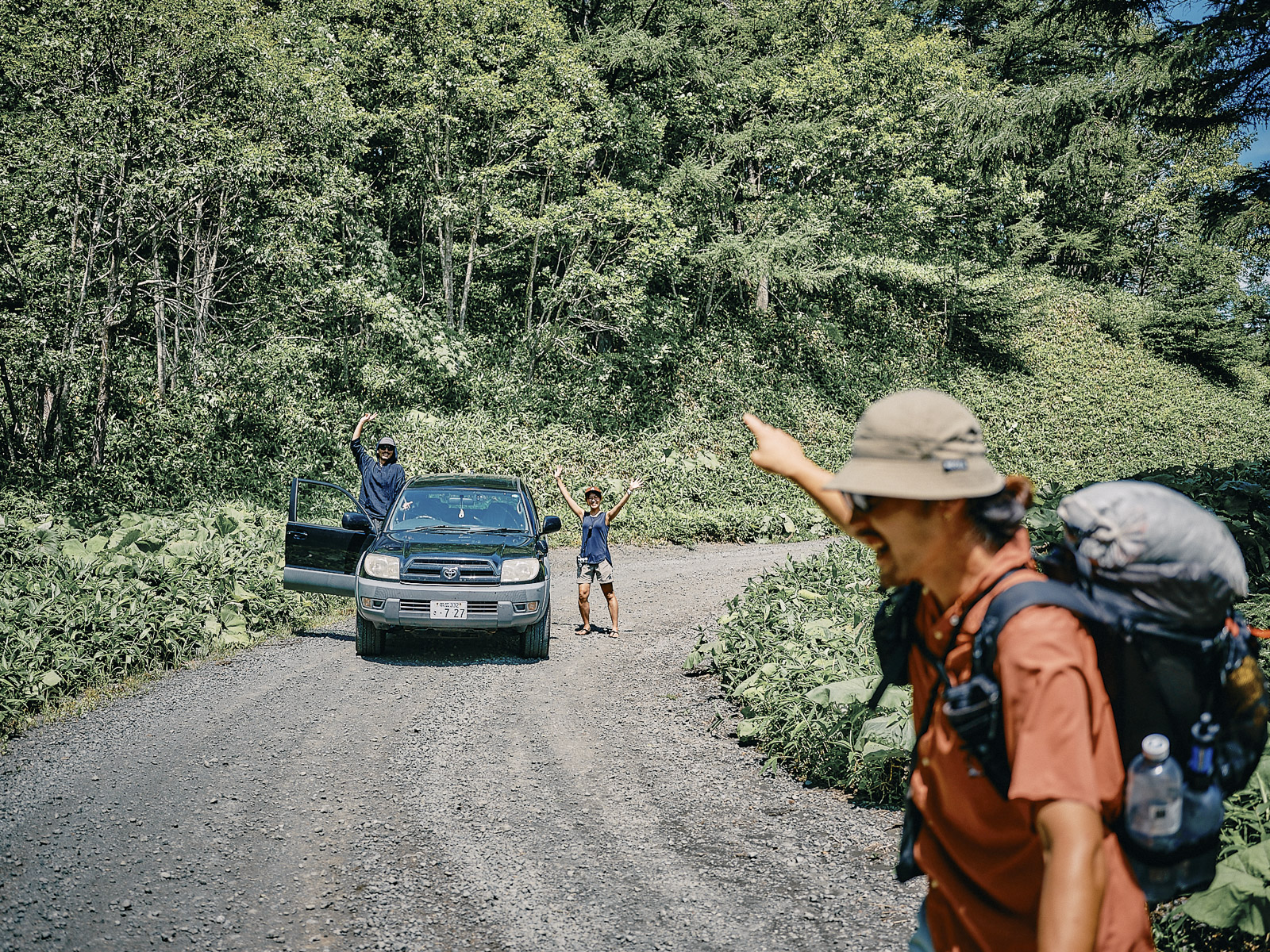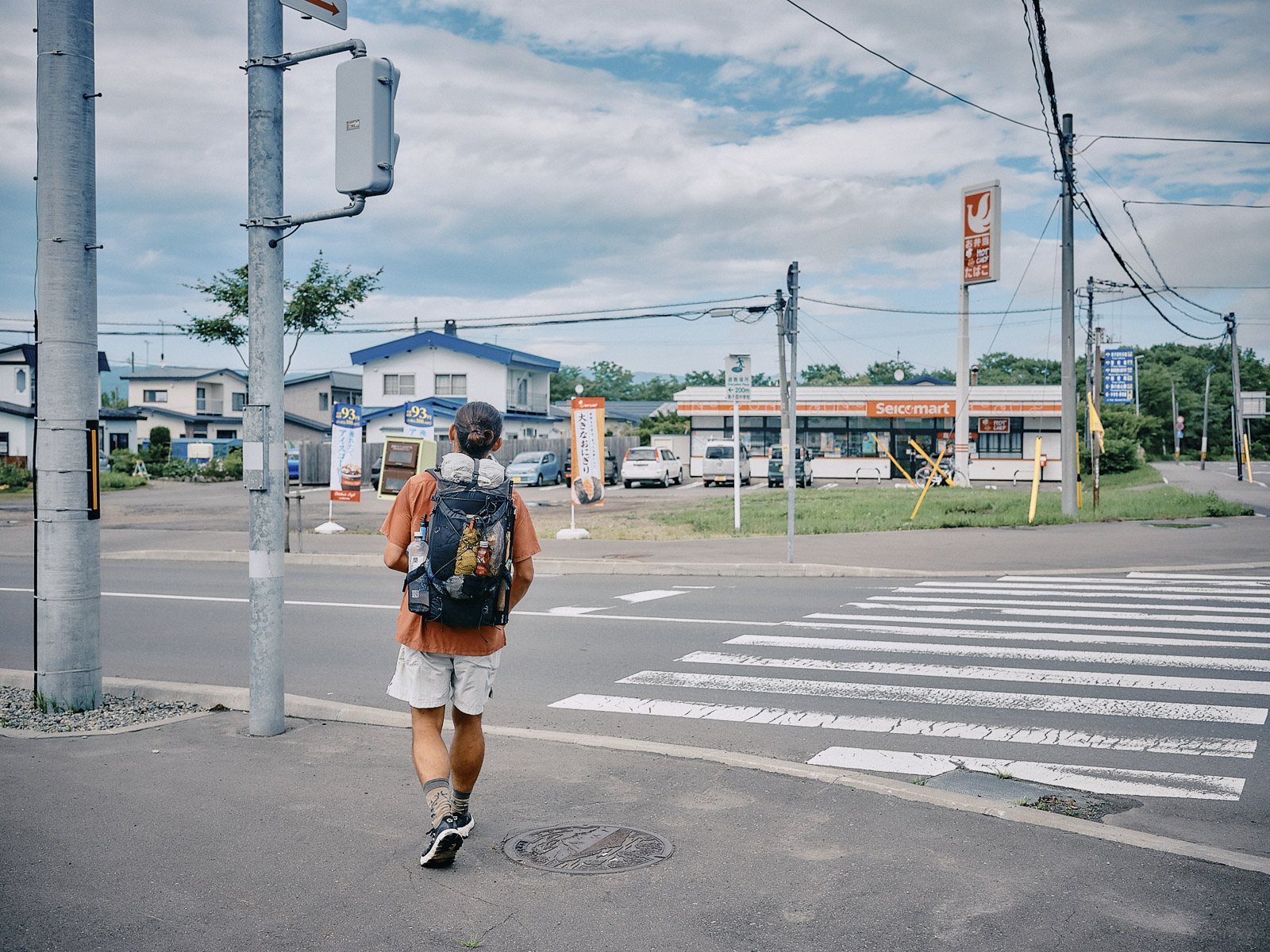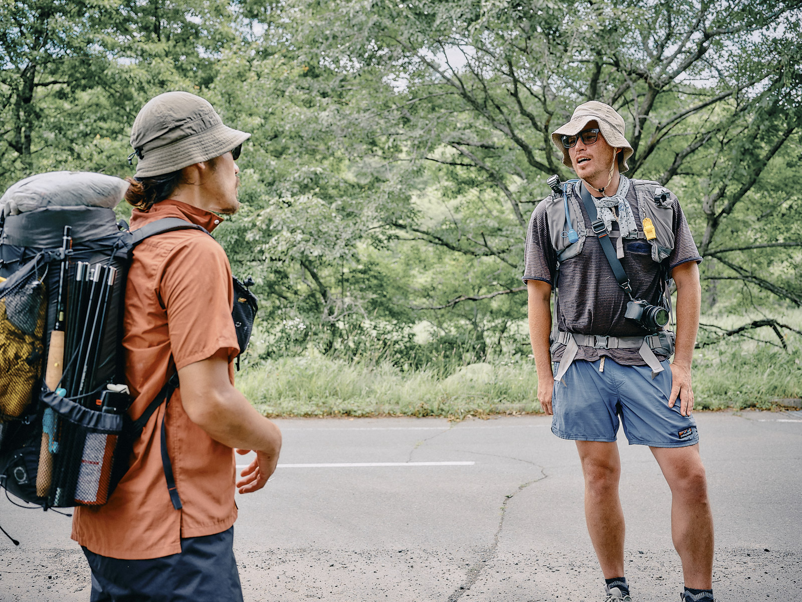 そんな会話をし、ジョウイチさんと僕たちの距離はごく自然な流れで離れていった。とはいえ、ここは北海道。直線の道路が多いこともあって、振り返れば遠くでカメラのレンズを覗き込み、シャッターを切る彼の姿が見える。道路脇に咲く花や、花に集まる虫を撮っているのだろうか。他のハイカーに依存しない楽しみ方をする彼を見て、ハイカーってやっぱりいいなと思った。