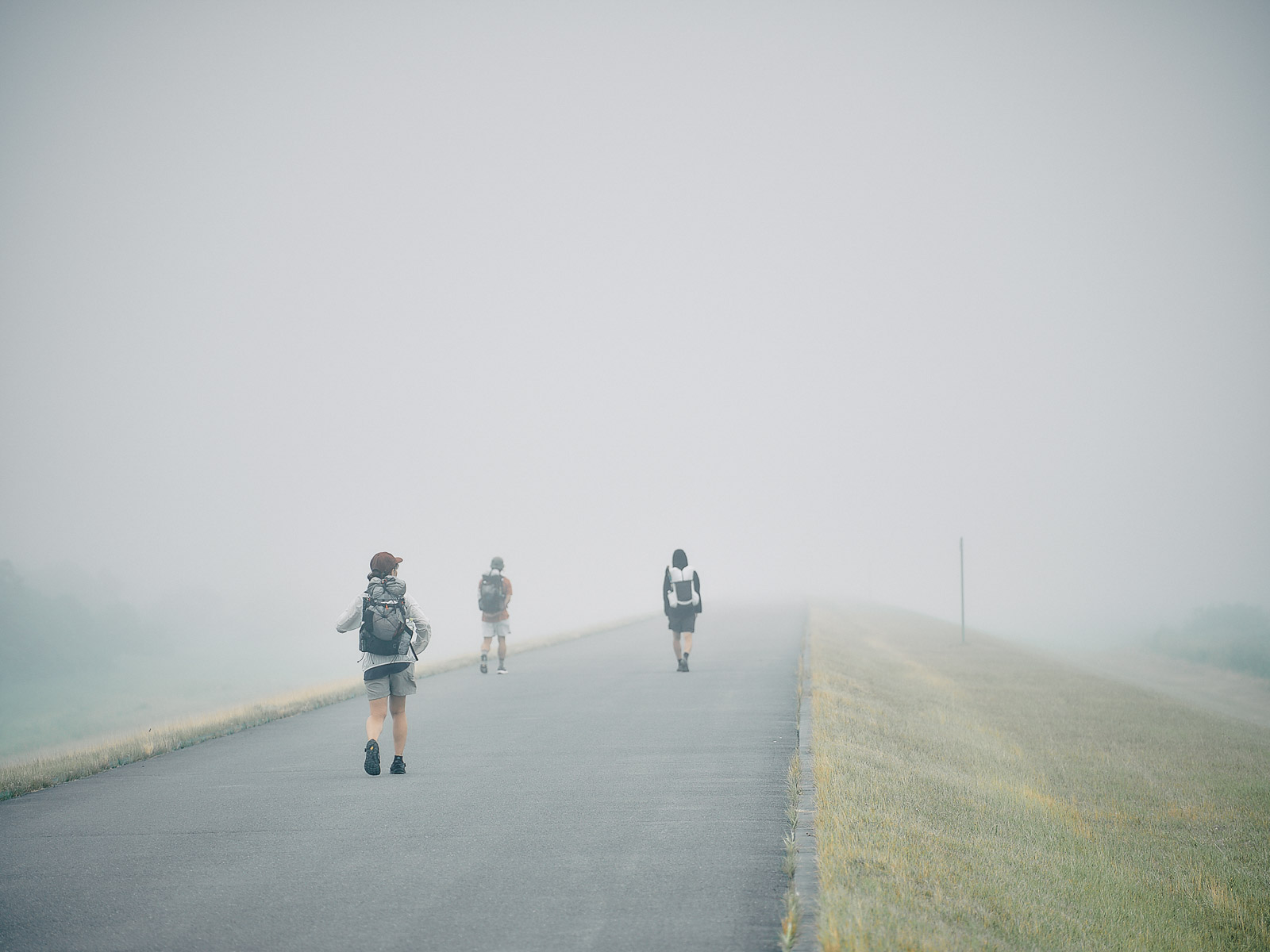 海霧の中歩いた昨日。もしかしたら、海霧のすぐ向こうにはタンチョウがいたのかもしれない。人が行動できる範囲で野生動物に出会うことは、そんなに簡単なことではないのかもしれない。彼らはこの大地を自由に移動する。歩き旅ですら、僕たち人間が立ち入れる場所は限られている。