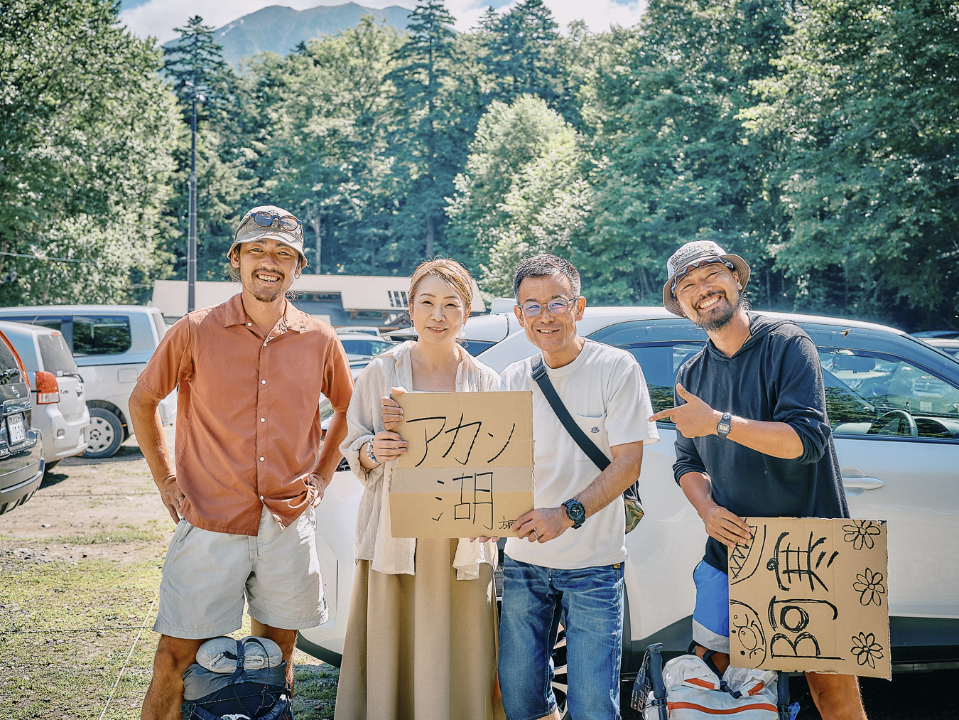 そんなことを妄想しながらたどり着いた阿寒湖畔キャンプ場。そこでは、大雪山を登りに来ていた友人たちが、連日の悪天候により大雪山を諦め道東まで会いに来てくれた。