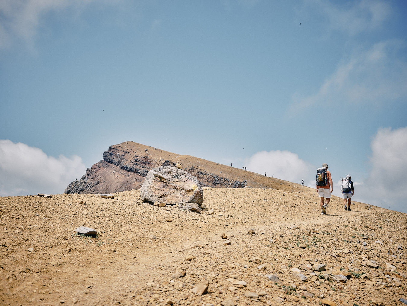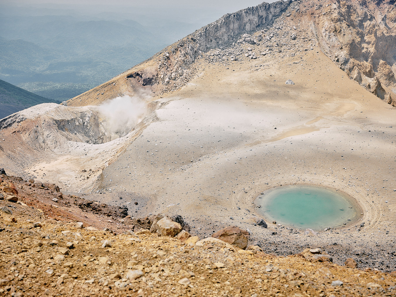 雌阿寒岳の標高は1499m。2006年にも小規模な噴火があったようで、山頂付近の噴火口からは煙が上がっている。火口付近の上空にはかなりの数のツバメが飛び交っている。なぜこんな場所に集まっているのだろう。ツバメの餌になる生き物が多いとは思えない。もしかすると、天敵となる猛禽類やカラスなどが近づけないことを理由に、有毒ガスや高温というリスクを取ってでも、この場所を生息地にしたのかもしれない。