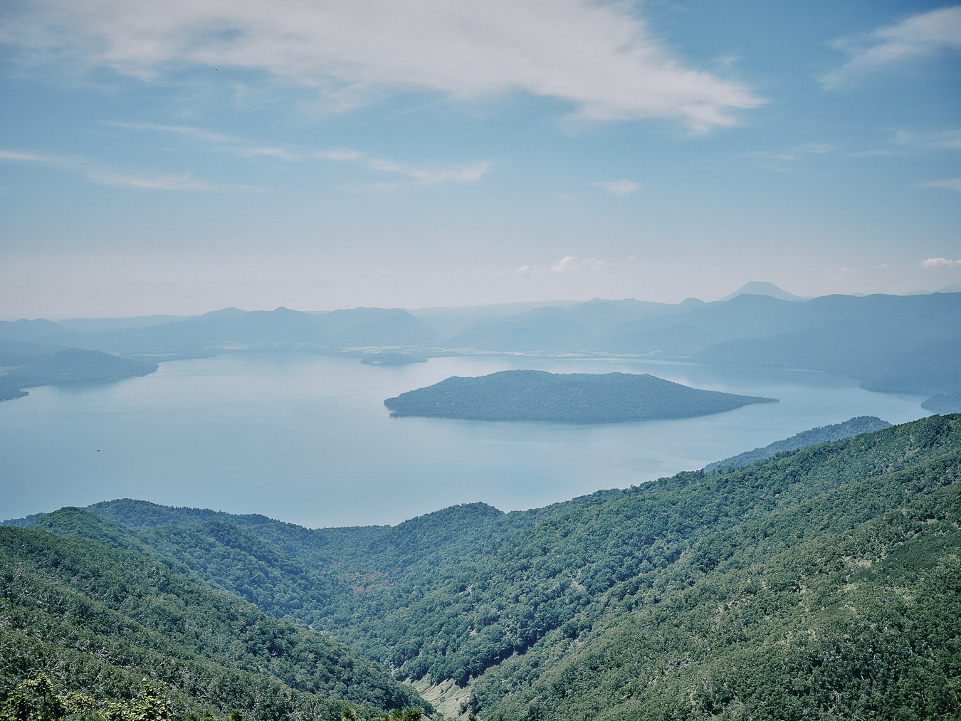 藻琴山山頂からの景色は格別だった。屈斜路湖をぐるりと囲む稜線がすっきりと見渡せる。カルデラに流れ込んだ水が湖を形成し、そこから流れ出た水が釧路川の源流となり、太平洋へと流れ込む。