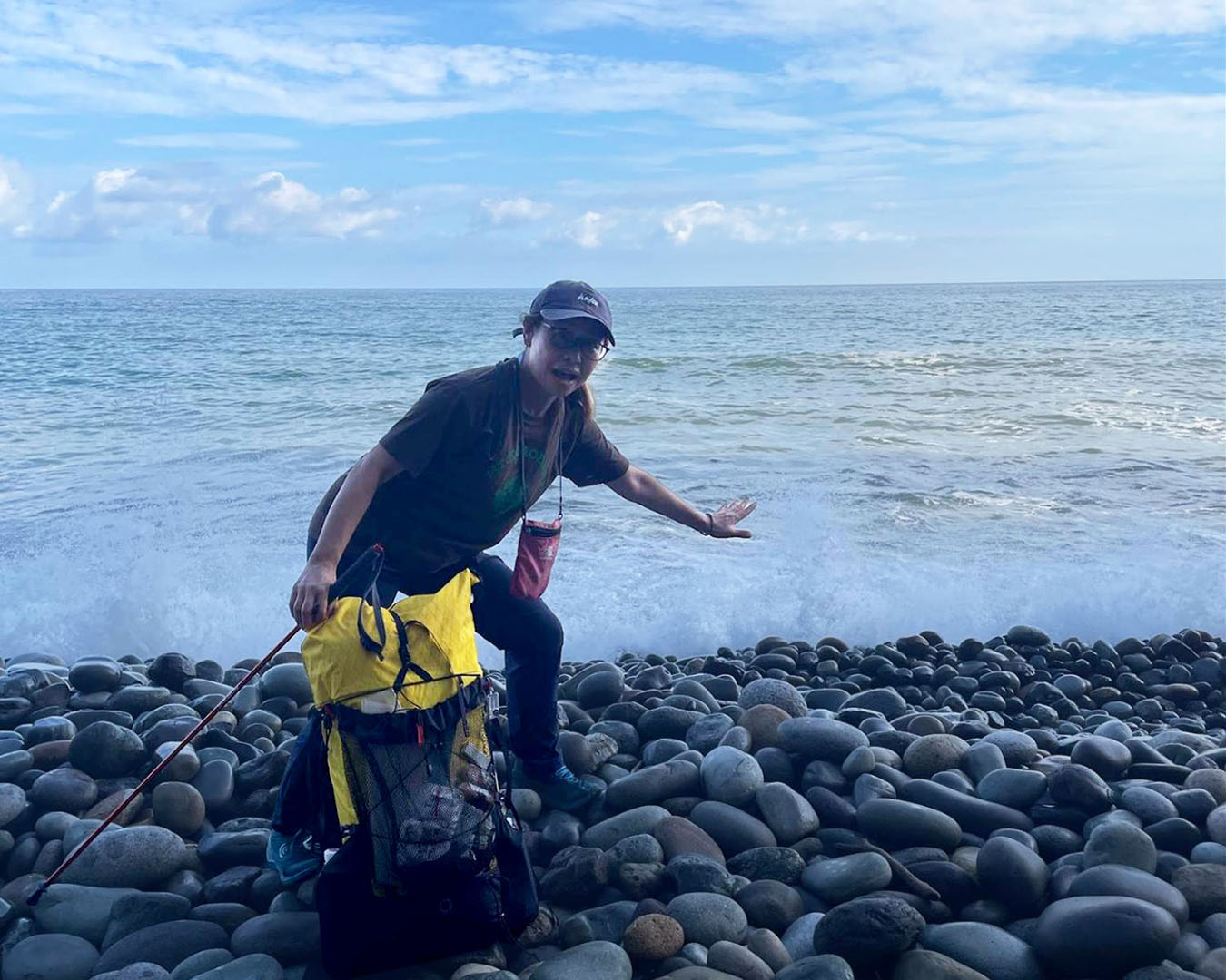 さて、栂海新道は言ってみれば海岸が登山口。日本海の波に触れると、旅の始まりにワクワクし、気持ちが盛り上がってきた。今日の目的地は10時間も歩けばたどり着く。不安は常に70%を越える湿度で、風もあまりなく歩みを止めると汗が滲む。予想気温は高いので、汗冷えの不安がないのが幸いだ。
