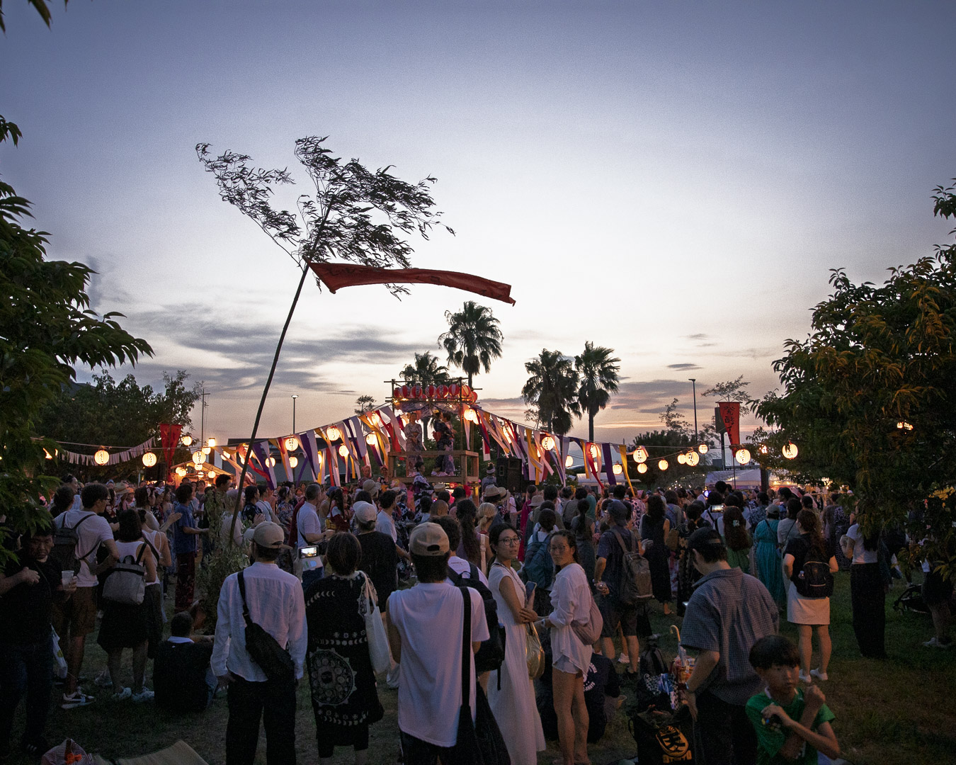 盆部の活動は、こうして特定の場所やコミュニティと深く結びついて展開していくのも大きな特徴だ。自らの主催イベントも行うが、それ以上に、縁があって呼んでもらえる場所に赴いたり、盆部の踊りを体験した人が「自分が暮らす街でもやりたい」と地元で祭りを立ち上げたりするケースが多い。