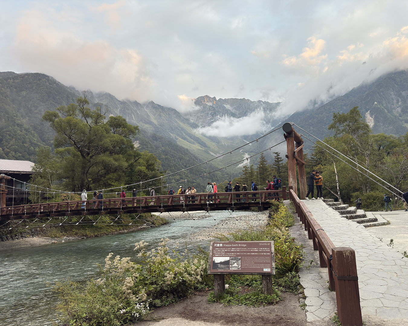 夜行バスに揺られながら、少し眠ることができた。上高地バスターミナルに到着し、観光客の多さに驚きながら歩みを進める。
