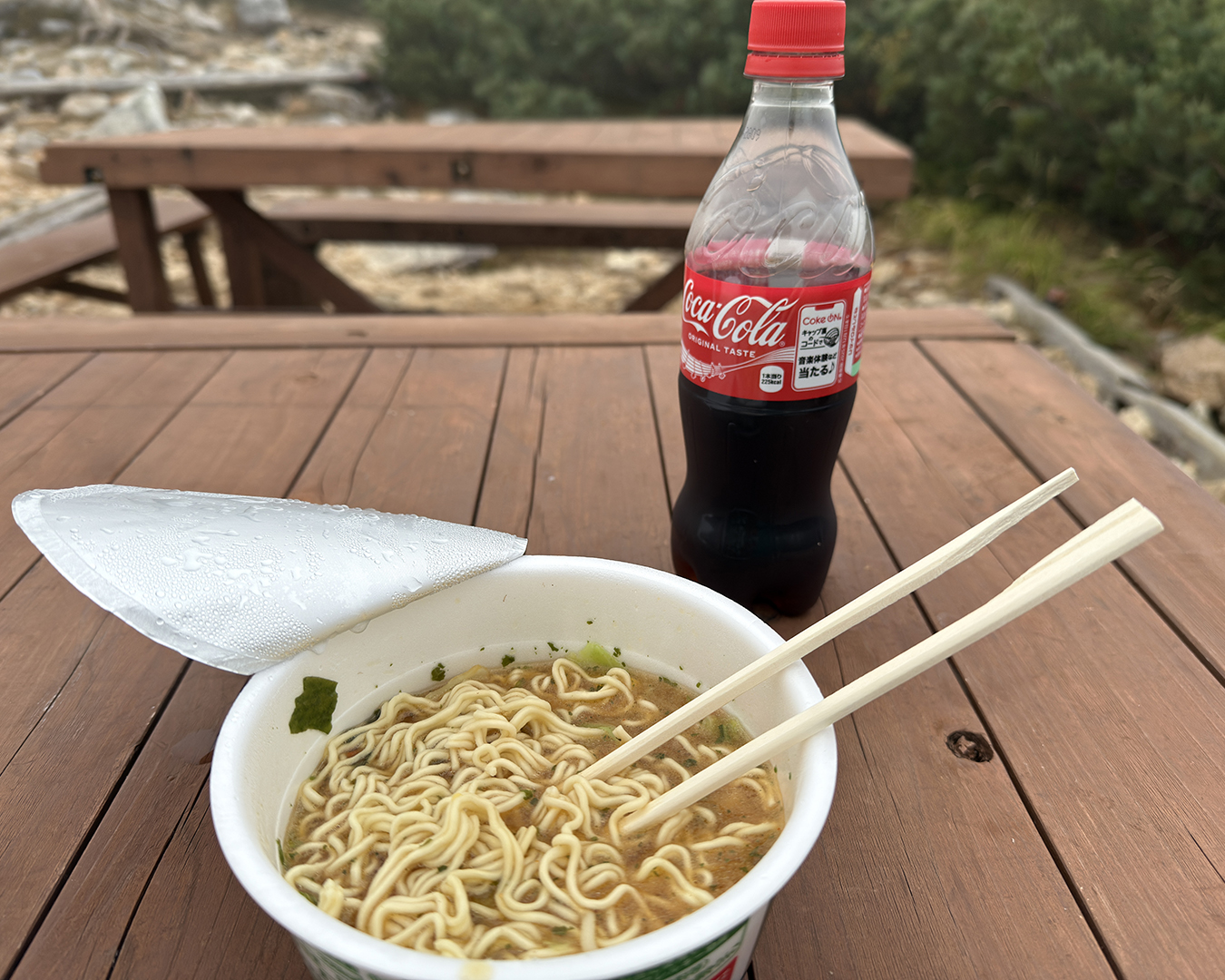 常念小屋に無事到着。コーラとカップ麺でエネルギー補給
