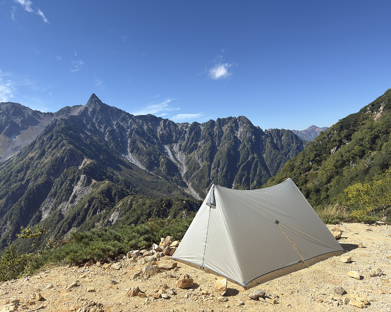 ヒュッテ西岳のテント場の眺望は素晴らしく、これまで歩んできた道のりをパノラマのように一望できた。穏やかな午後を過ごし、念入りにマッサージをして体を整える。こうして2日目の山行を静かに終えた。