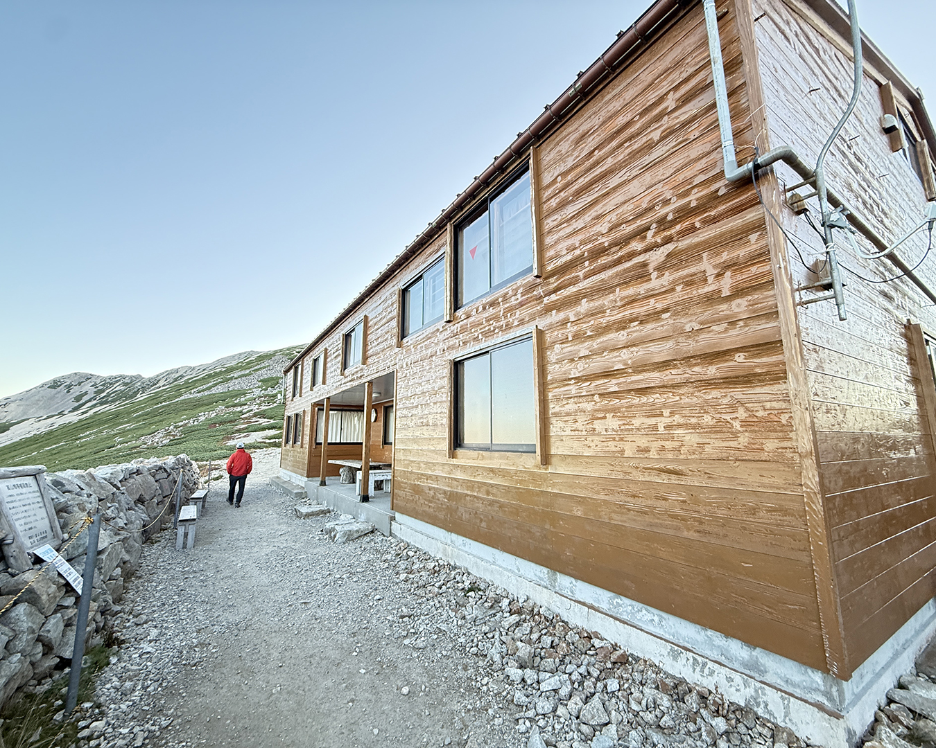 小屋でおでんを食べてひと休みし、薬師岳山荘を目指して再び歩き出す。当初の予定では太郎平キャンプ場で泊まるつもりだったが、クマの影響でキャンプ場は閉鎖されており、この日は人生で初めての山荘泊となった。途中で一緒になったハイカーたちと談笑しながら薬師岳山荘に到着。夕食までのひとときをゆったりと過ごす。