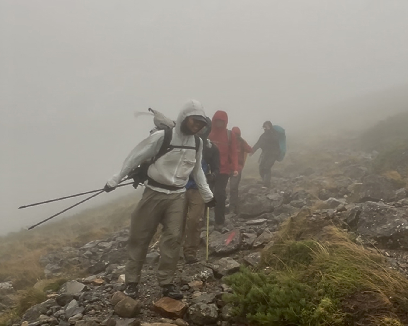 依然として風は強く、さらに雨が加わり体温を容赦なく奪っていく。バックパックを下ろすことなく、Alpha Haramakiを身に付けると、暖かくてホッと安心感に包まれた。お守りのように持ってきて良かったと心から思う。