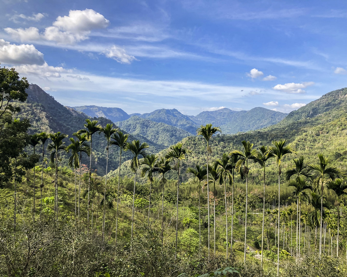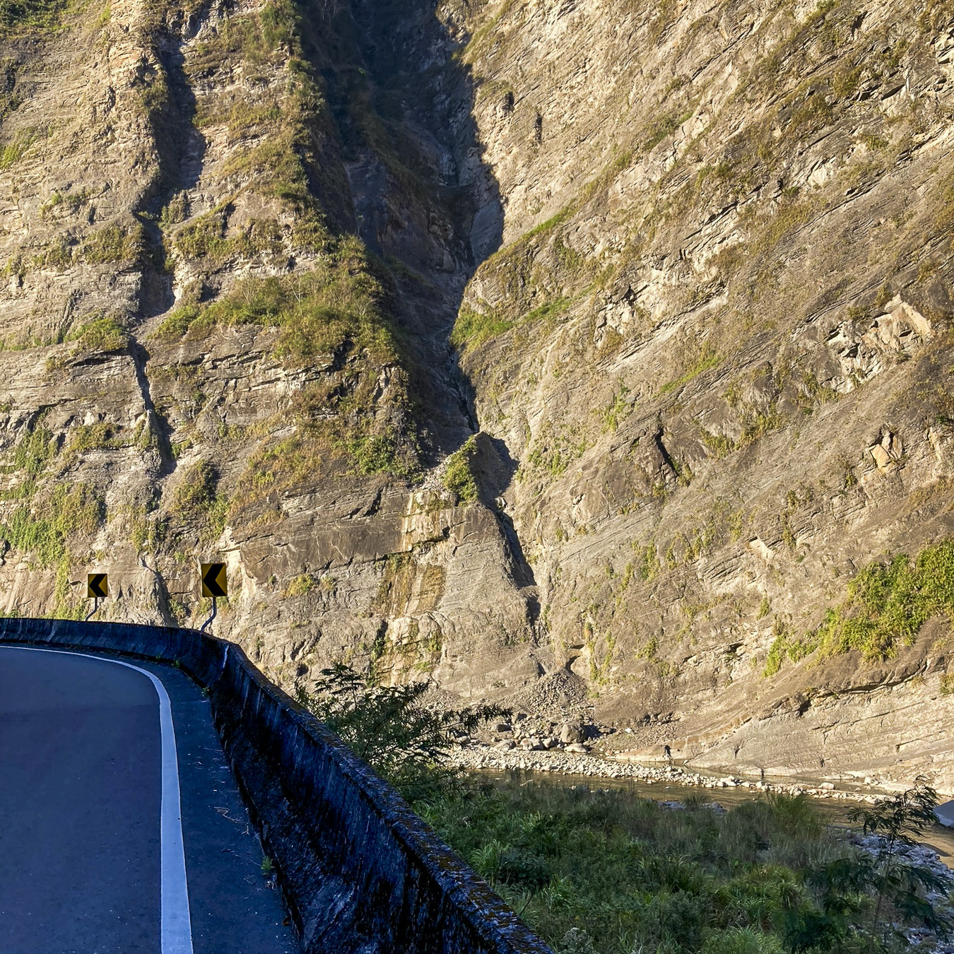 ここ数日、遠く、遠くに見えていた山並み。その山の中腹に、まるで龍が飛来しているかのように横切って走る道。地図を見ると、まさかと思って見上げていたあの途方もない道へと登っていき、そこから道沿いを東に辿って阿里山国立公園へと目指すのが、今日のルートのようです。