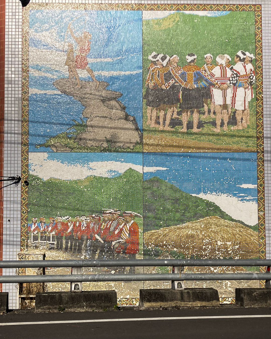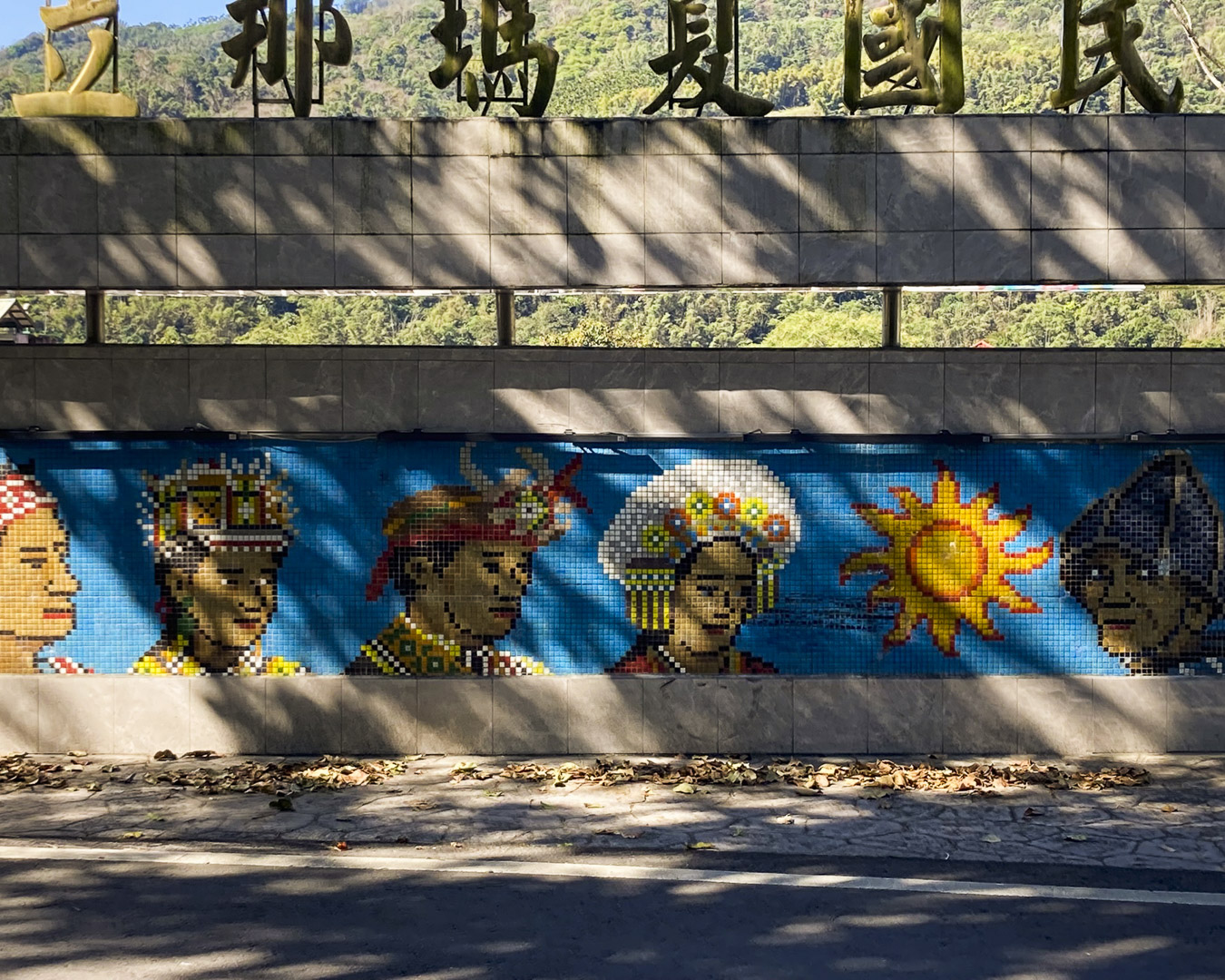 地図を見ると、これから日本でも有名なお茶どころである阿里山(ありしゃん)の山岳エリアに入って行くようです。道すがらの村々では、台湾原住民族の壁画をよく見かけました。どうやらこの山岳エリアは原住民族が住まう地域でもあるようです。