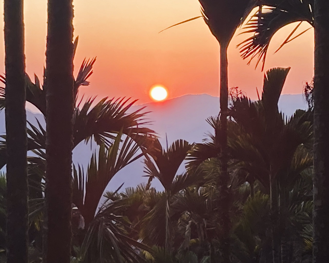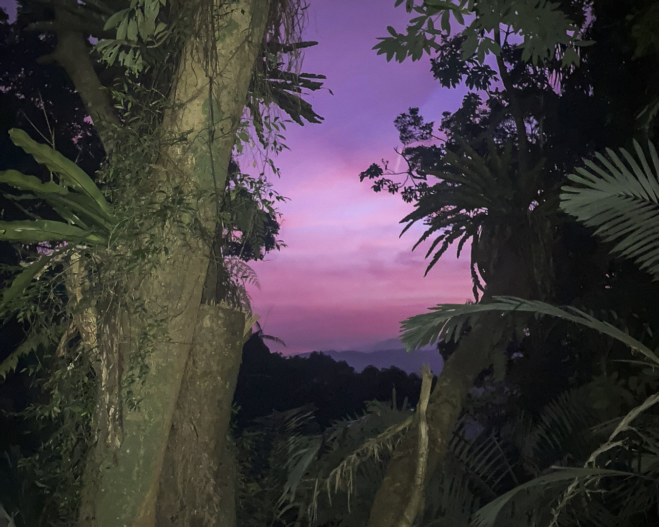 暗闇にヘッドライトをつけて歩き、村から谷の向こう側への吊り橋を渡り、山の中腹に東屋を見つけ、そこのベンチに寝袋を広げ横になりました。もうすぐ東の空が、闇から青くなってきやしないかと思いながらも、ちょっとでも寝ておかなければと、目を瞑りました。しかし、歩いて旅した先で思わぬ宝物を見つけてしまったようなあの光景が、瞼の裏に浮かぶばかりで、なかなか眠りにつくことができませんでした…。