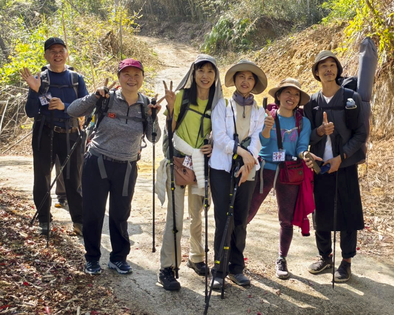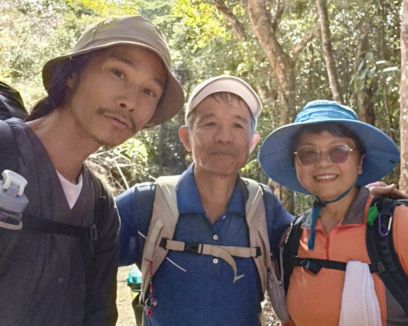 挨拶に続いて、立ち止まり、会話をしました。どうやら、この一団は台湾のいろいろな場所から集まった山歩き同好会の皆さまのようだ。ぼくが日本人だとわかると「日本のアルプスに登ったことあるよ」「今年は熊野古道を歩きに行く計画を立てているよ」と、いろいろなお話をしてくれました。