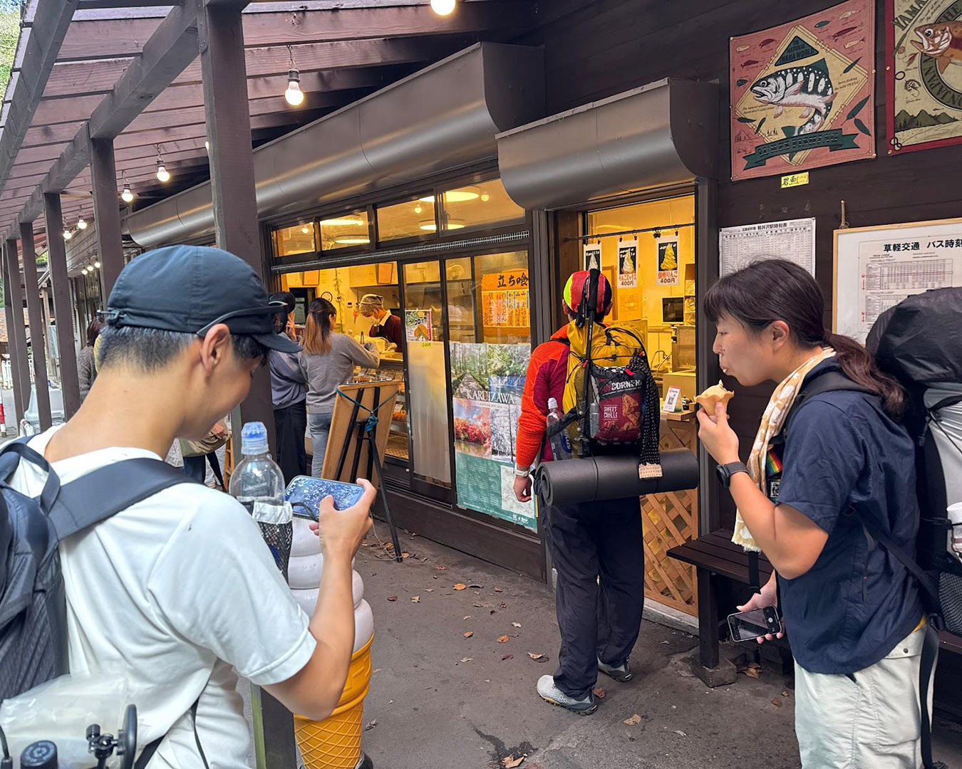 よく考えたら、いつものPRACTICEらしからぬ雰囲気はあるが(普段は初日からゴリゴリ山歩き!だからかも?)、今回の旅のコンセプトである「Rich, Fast, Light & F(Fun & Family)」に忠実に活動していて、とても楽しい。白糸の滝でプチ観光をしたりと、スタート時に2日目以降のハードな行程に抱いていた不安は、この時には消え去っていた。