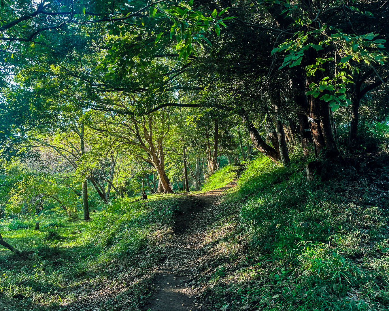そのまま緑地の尾根道を端から端までゆっくり往復して約30分。最後は心と体がぴったりひとつになり、呼吸と歩くことに集中することができた。頭の中は少しボーッとしているような、少し高揚しているような気分で、普通にハイキングをしていてもこういう境地になることはあるが、それを人為的に作ることができた気がした。これは良いことを覚えたぞ。