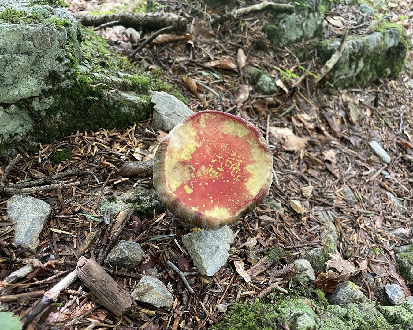 ピザパンみたいな茸を発見。あぁピザが食べたいなど、修験道に似つかわしくない煩悩全開で歩いていた。