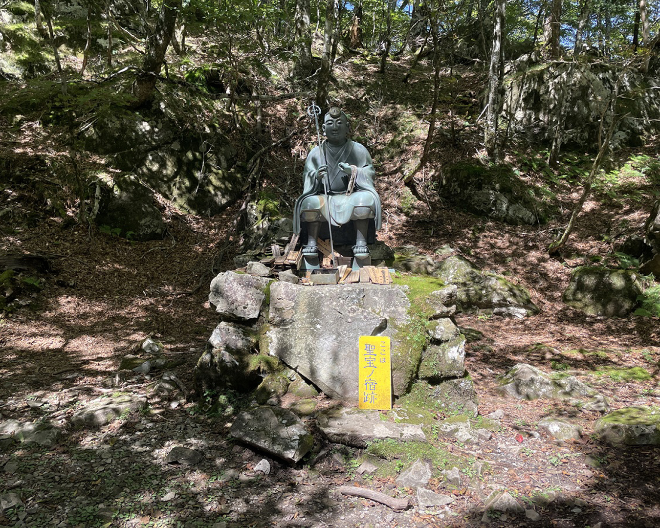 この方は大峯奥駈道を歩くのは7度目で、修験道として法衣を纏い、法螺貝などの法具を携えて各地を礼拝して回るのは今回が初めて。登山を楽しんでいた時に修験者の方を目にして興味が湧き、実践することになったそうだ。まだ南奥駈の道は自分にとっては未知だが、これまでも確かに修行と言うにふさわしい急峻な道が多いように思う。標高が高くないから難易度も高くないだろうと考えていた自分の浅はかさを反省。