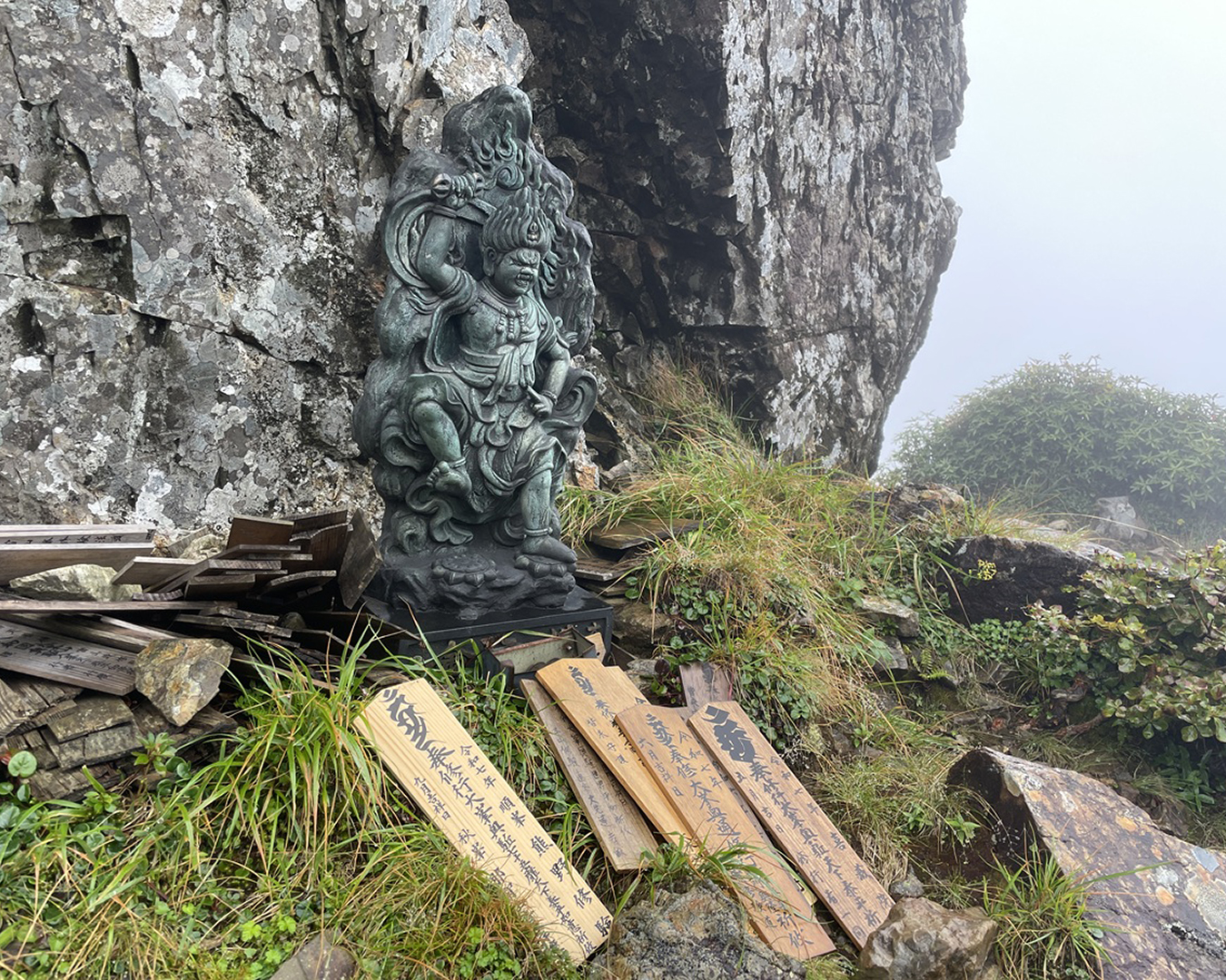 橡(エン)の鼻 蔵王権現像。大峯奥駈道には全部で75ヵ所の「靡(なびき)」があり、修行者の方が祈りを込め、木札を捧げている。