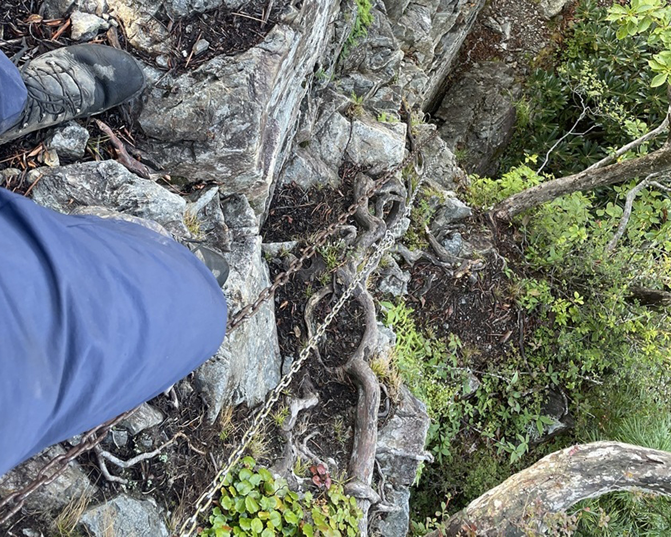 転倒した岩場。杉の根と大きく丸い岩が歩きづらかった。落ちる時は自分の「わぁー」という漫画のような声が聞こえた。