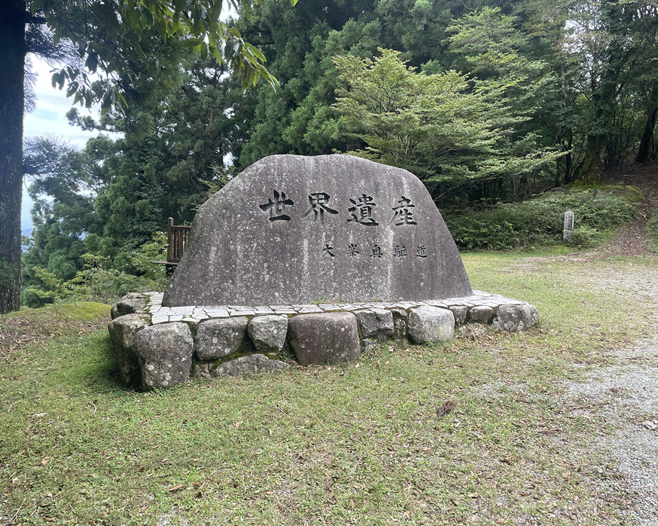 大峯奥駈道 石碑。林道との交差点が増え、ドライバー向けか、立派な石碑があった。