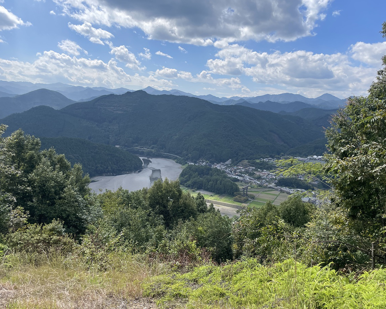 熊野川と町。人里がすぐそこに見えてきたのに、何度も下っては登りを繰り返し、道のりが長かった。