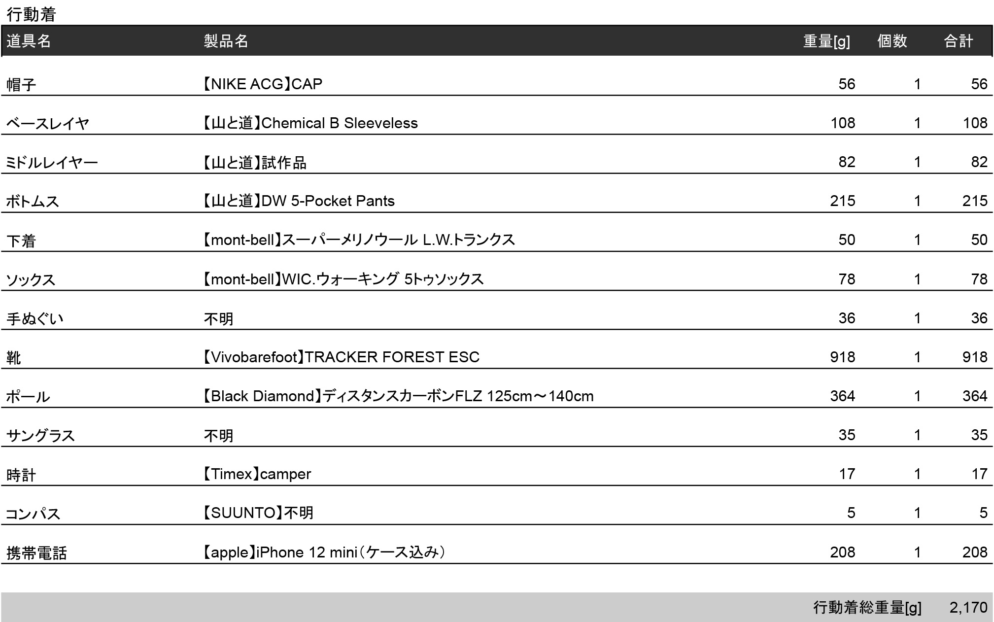 そんな記念すべき第1回目のULハイキング研修は、自分にとって初めて尽くしの旅であった。軽量化を意識して選んだツェルトやビビィの装備も、ひとりで長期間山に入る経験も初めてだ。ギアリストを作成し、ギアの取捨選択を行うのも山と道HLCの『ULハイキング入門講座』への参加以来となり、かなり頭を悩ませた。