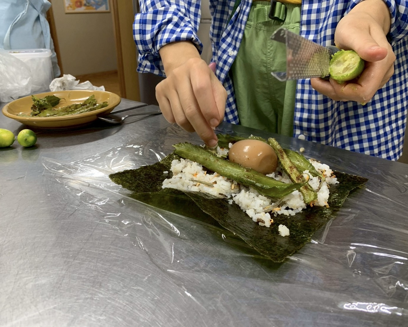 ともさん「ん〜! 最初はレモングラスの香りが一番強いと思ったけど、食べてみるとキンカンの香りがすごい。 海苔巻きに柑橘って新しいし、おいしい!」